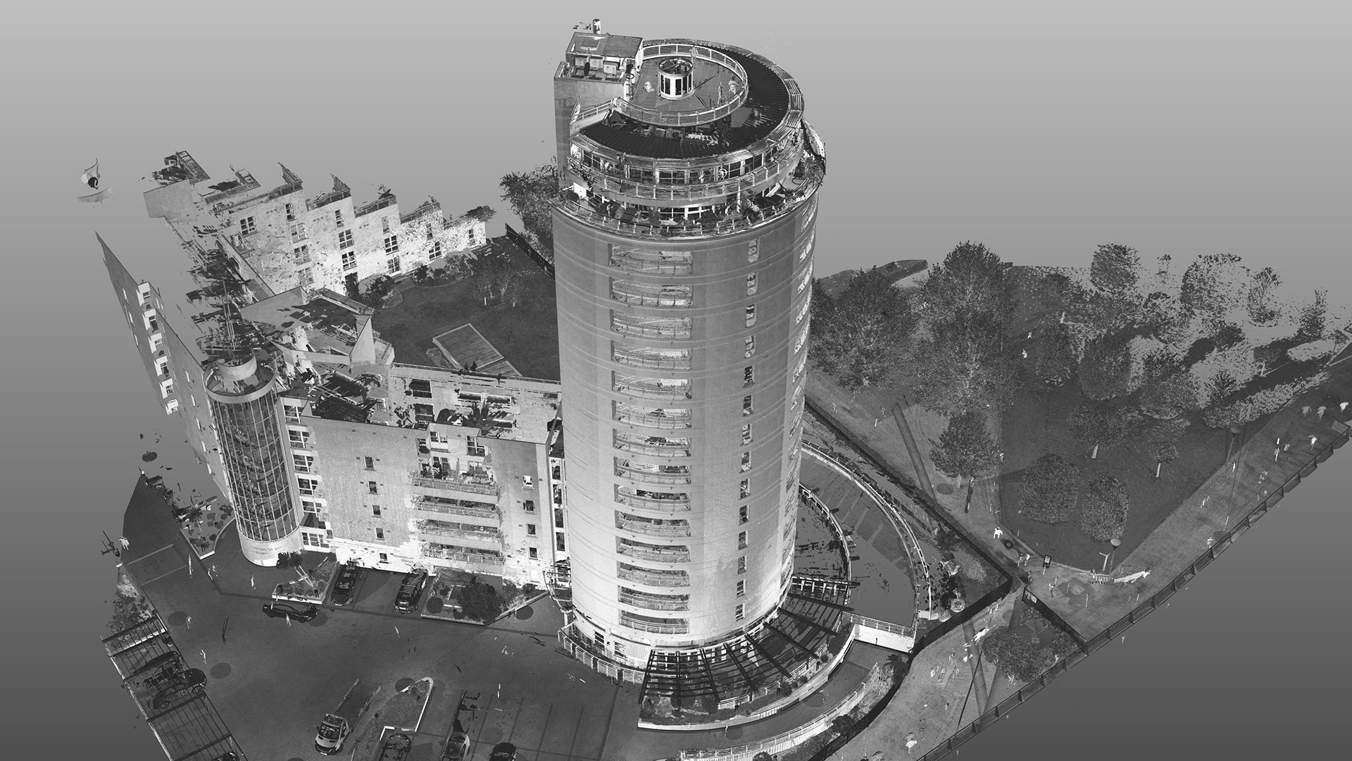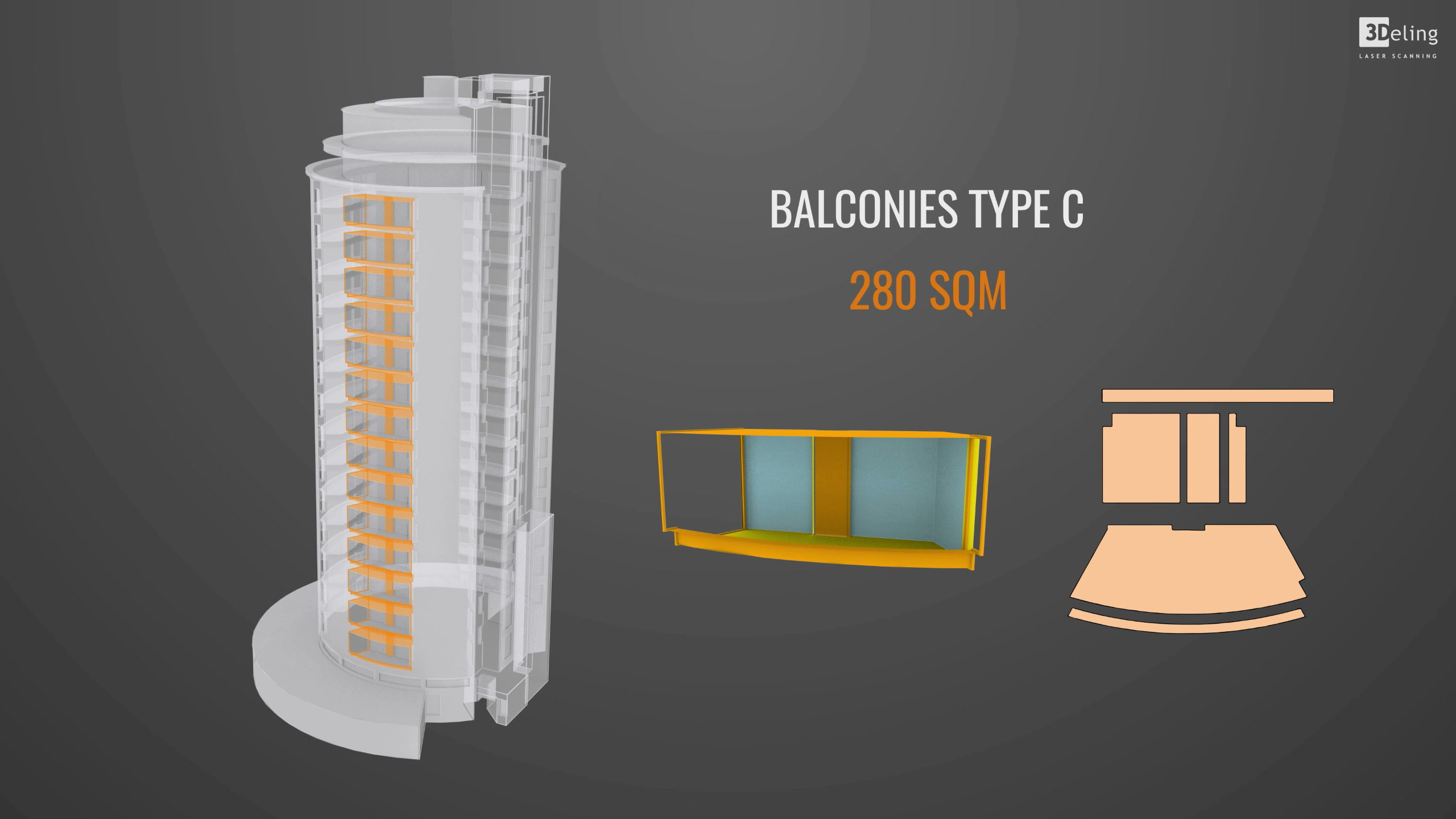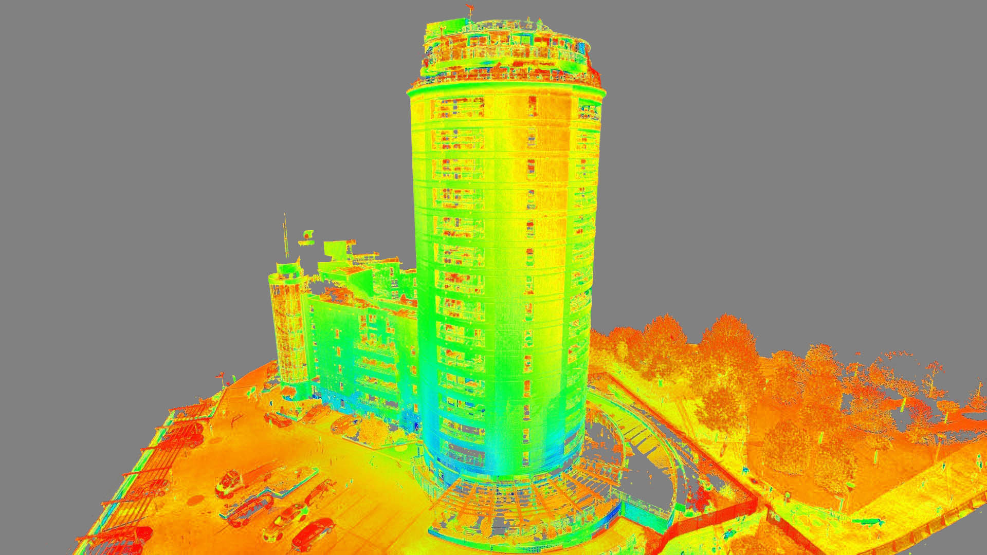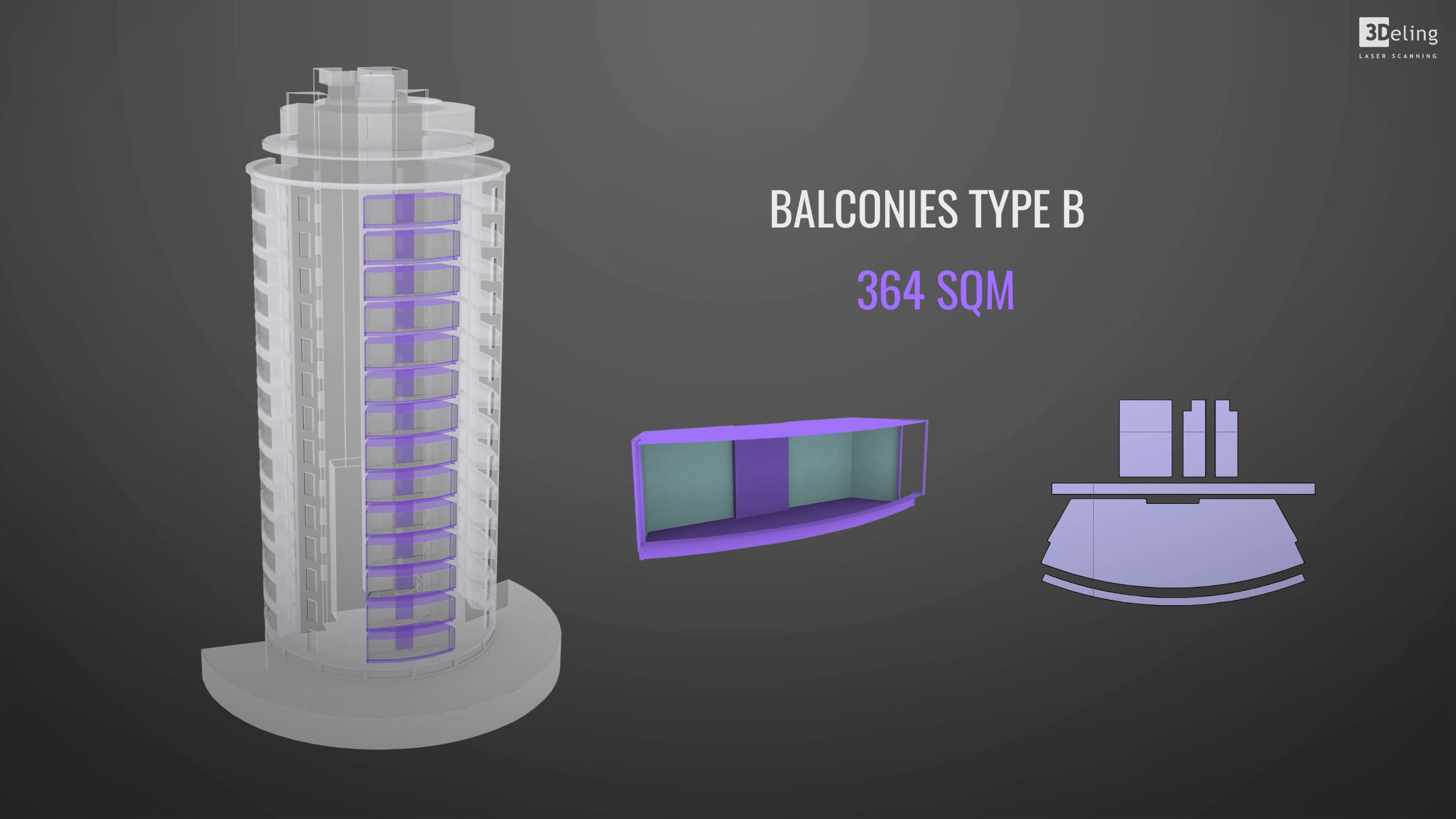 W pierwszej kolejności, przy pomocy skanera o dalekim zasięgu zeskanowana została elewacja zewnętrzna budynku. Następnie, dane ze skanera zostały połączone do jednego wspólnego układu współrzędnych i dzięki temu można było uzyskać spójną chmurę punktów obrazująca kształt całego budynku. Kolejny krokiem było stworzenie modelu bazującego na wspomnianej chmurze punktów. Praca ta została wykonana w programie MicroStation. Model 3D elewacji budynku podzielono na obszary ze względu na jego poszczególne typy, a każdy wydzielony model został rozwinięty na płaszczyznę w celu obliczenia jego powierzchni. Zakres całego projektu obejmował wszystkie części budynku. Wydzielono następujące obszary: ściana główna, ściany tylne, ściany na dachu oraz balkony, które również rozdzielone zostały pod względem typu. Ostateczne wyniki pomiarów przedstawiono w raporcie, który zawierał widoki izometryczne wydzielonych brył wraz z ich rozwinięciami na płaszczyzny 2D.