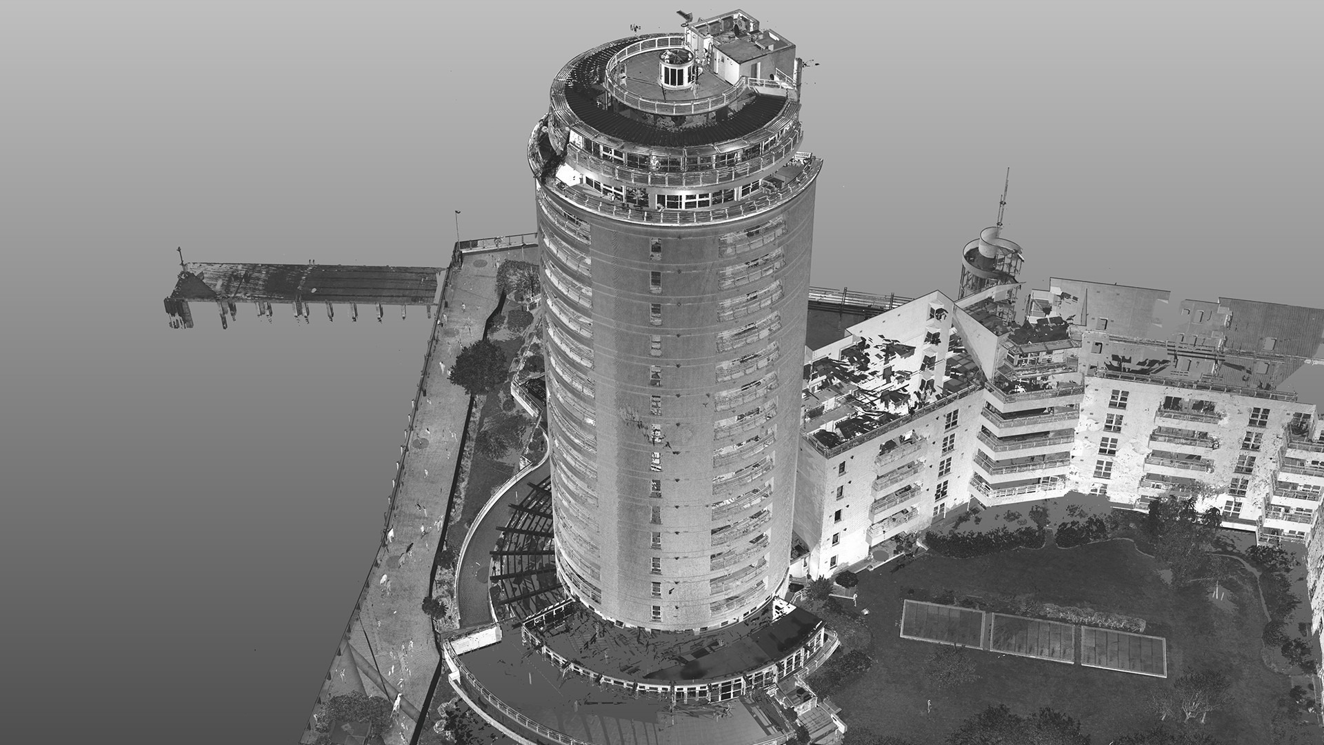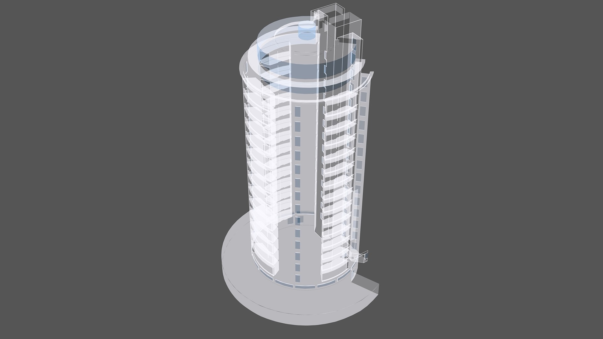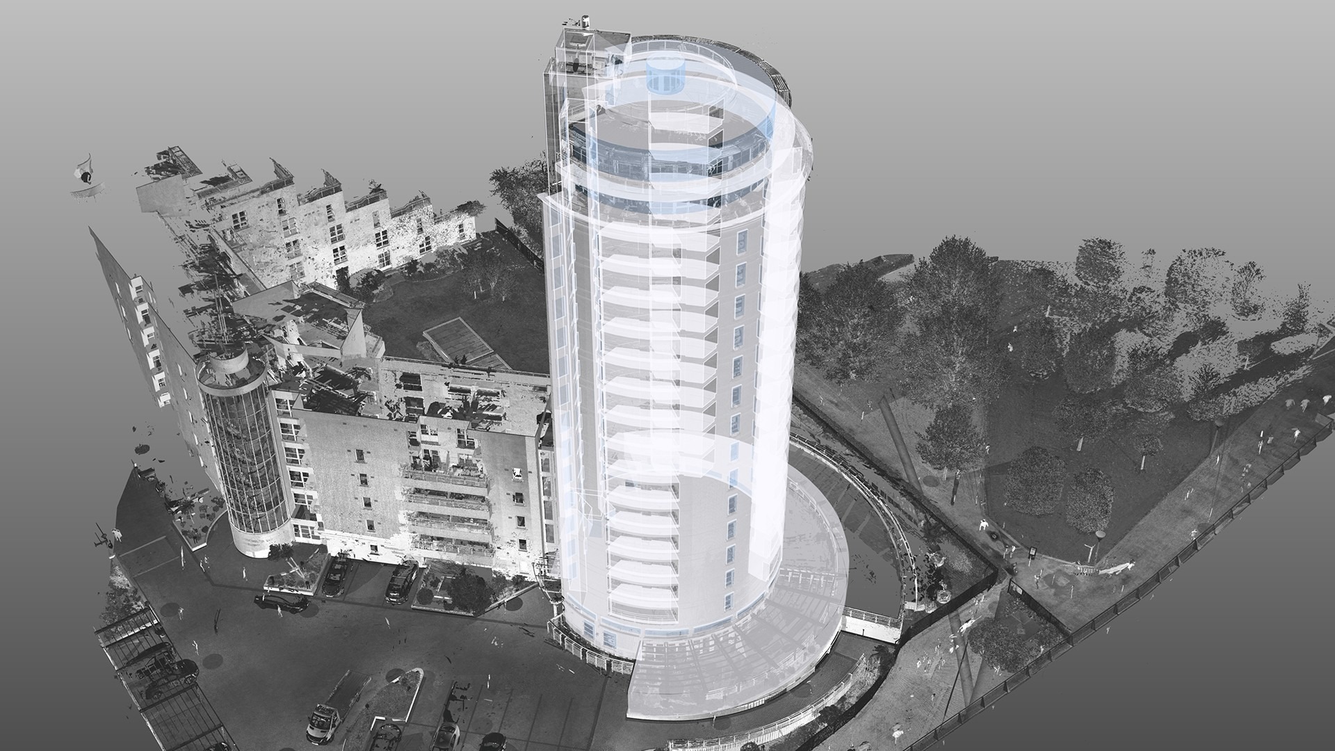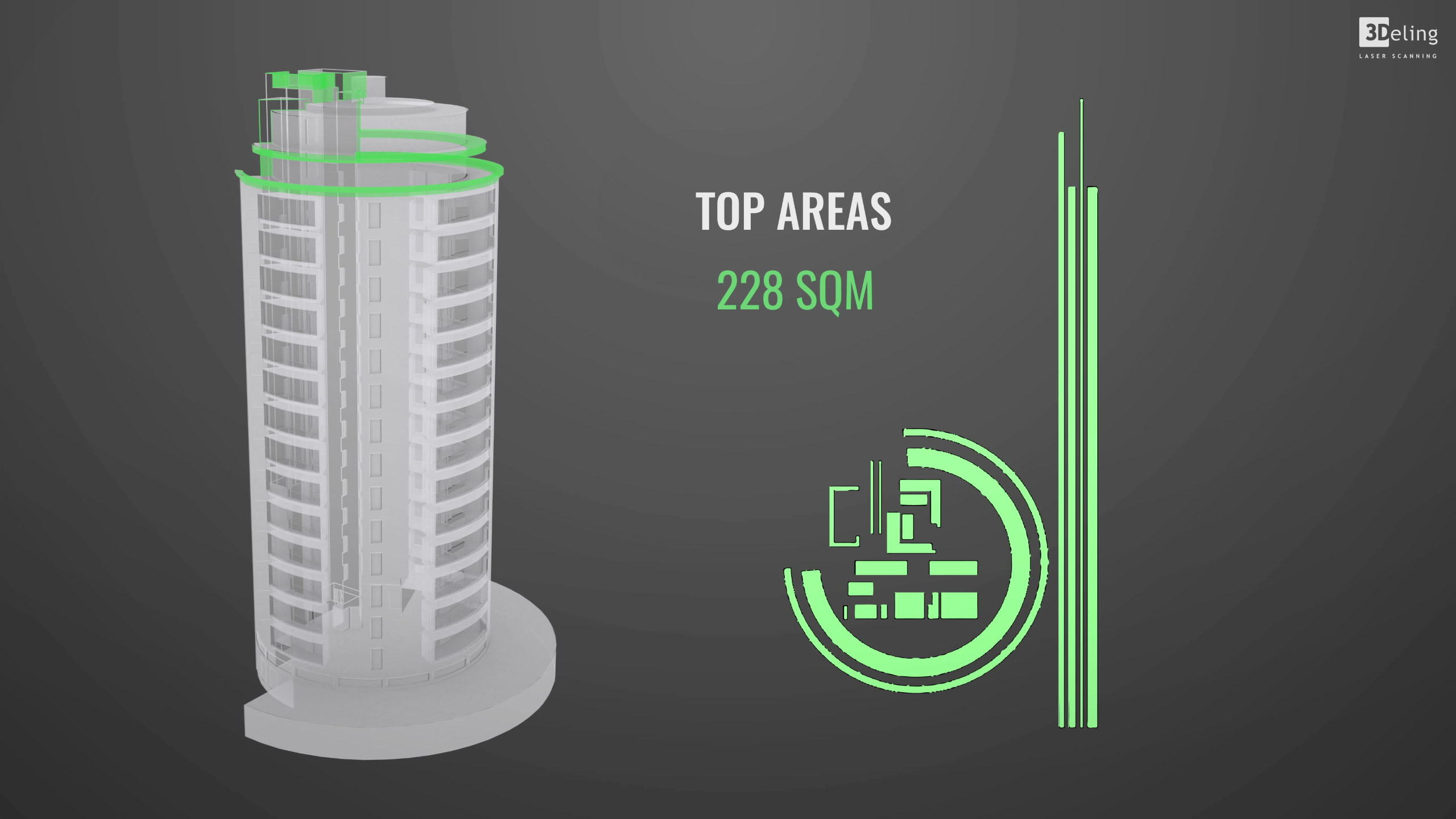 W pierwszej kolejności, przy pomocy skanera o dalekim zasięgu zeskanowana została elewacja zewnętrzna budynku. Następnie, dane ze skanera zostały połączone do jednego wspólnego układu współrzędnych i dzięki temu można było uzyskać spójną chmurę punktów obrazująca kształt całego budynku. Kolejny krokiem było stworzenie modelu bazującego na wspomnianej chmurze punktów. Praca ta została wykonana w programie MicroStation. Model 3D elewacji budynku podzielono na obszary ze względu na jego poszczególne typy, a każdy wydzielony model został rozwinięty na płaszczyznę w celu obliczenia jego powierzchni. Zakres całego projektu obejmował wszystkie części budynku. Wydzielono następujące obszary: ściana główna, ściany tylne, ściany na dachu oraz balkony, które również rozdzielone zostały pod względem typu. Ostateczne wyniki pomiarów przedstawiono w raporcie, który zawierał widoki izometryczne wydzielonych brył wraz z ich rozwinięciami na płaszczyzny 2D.