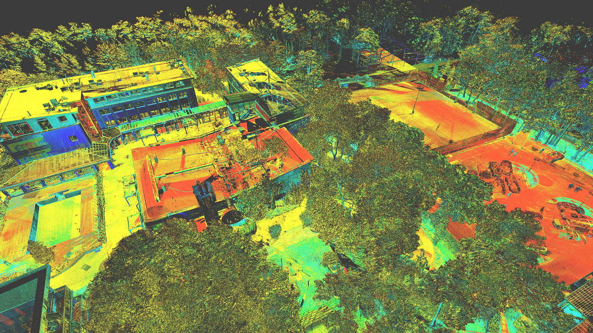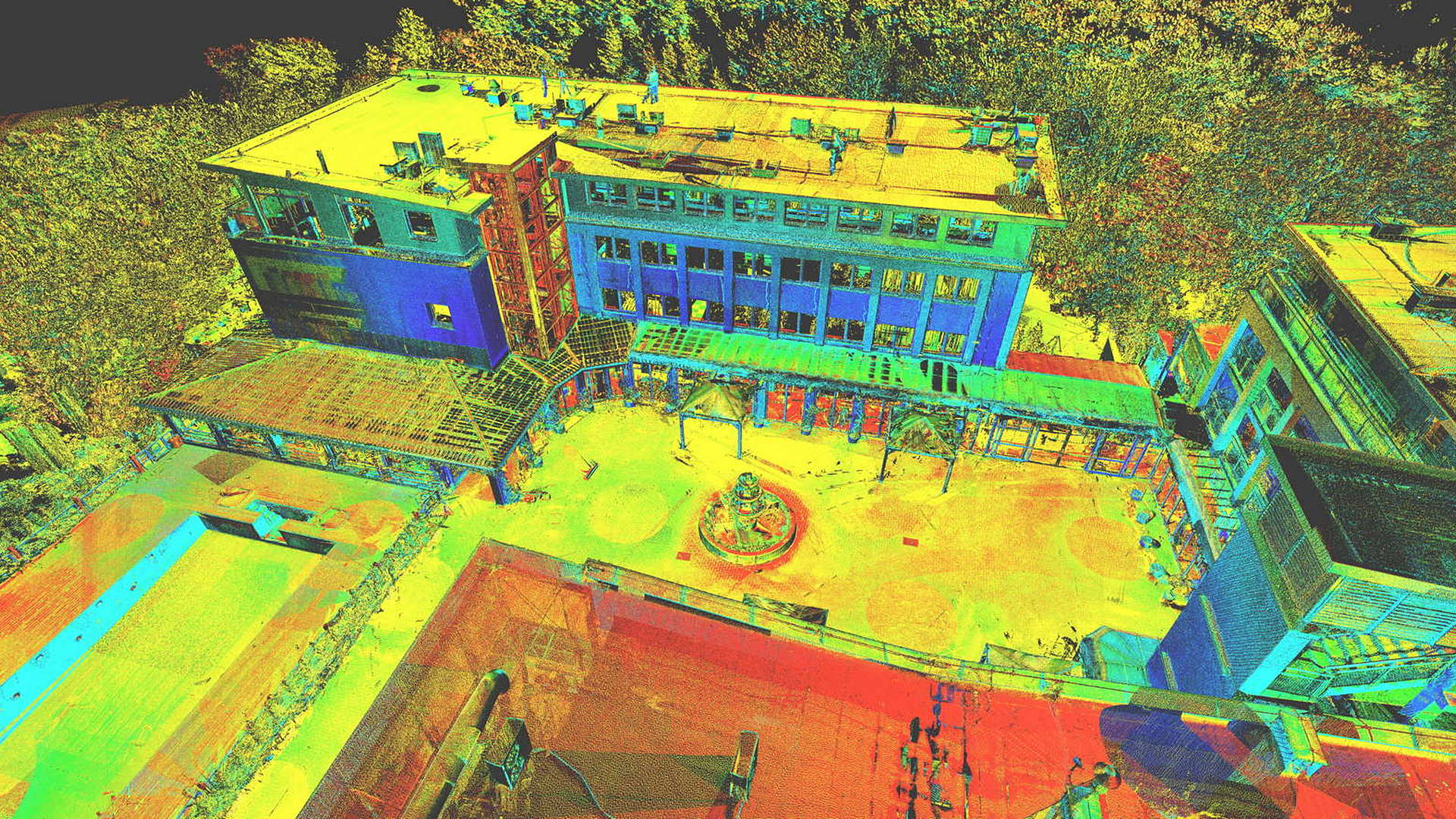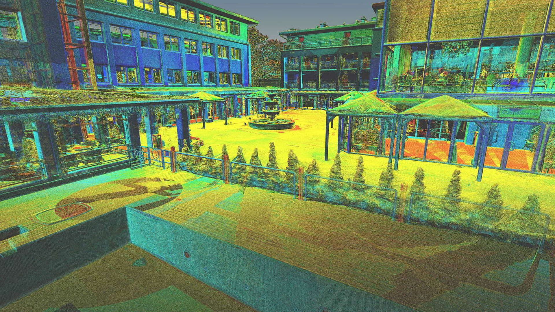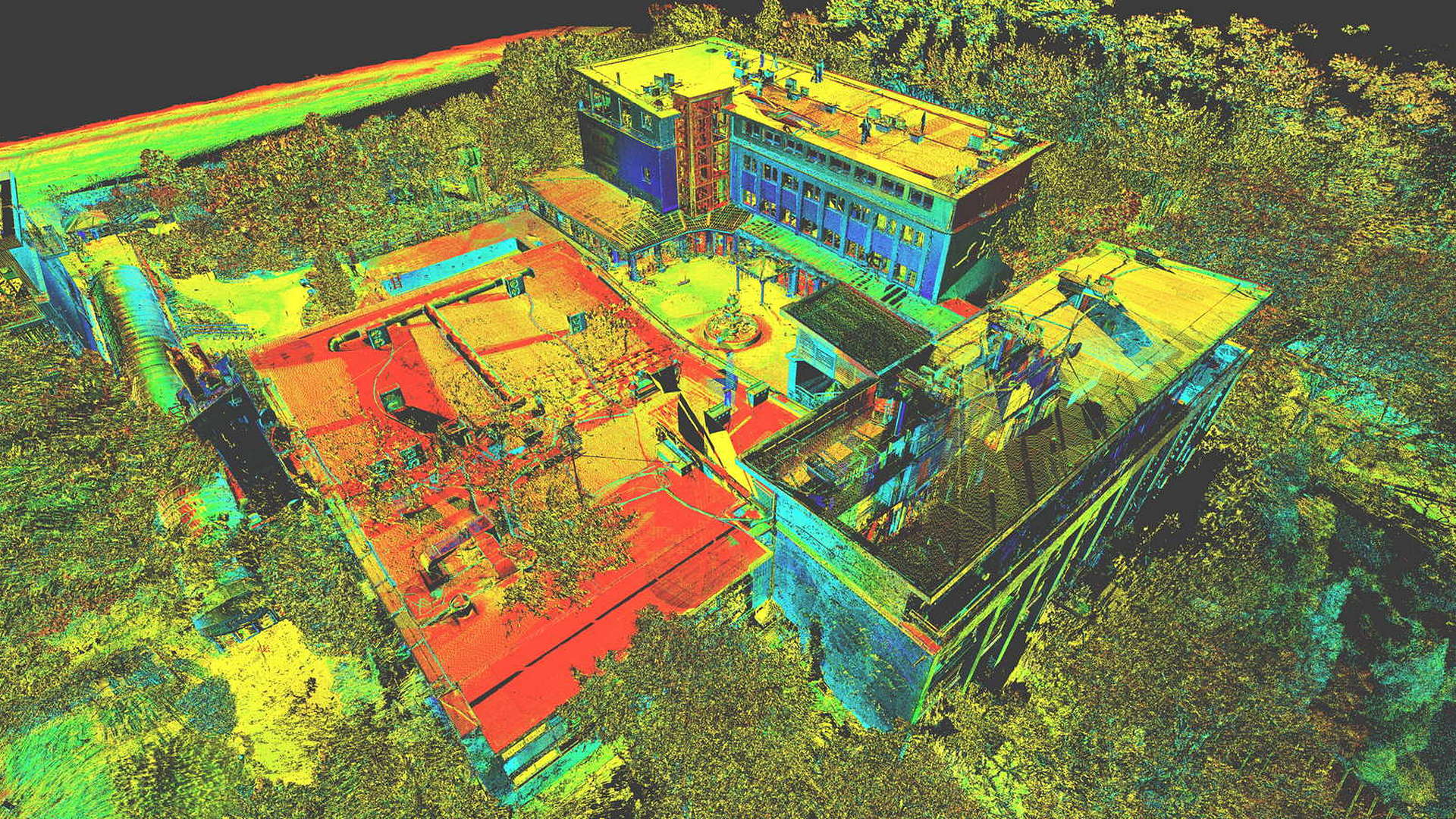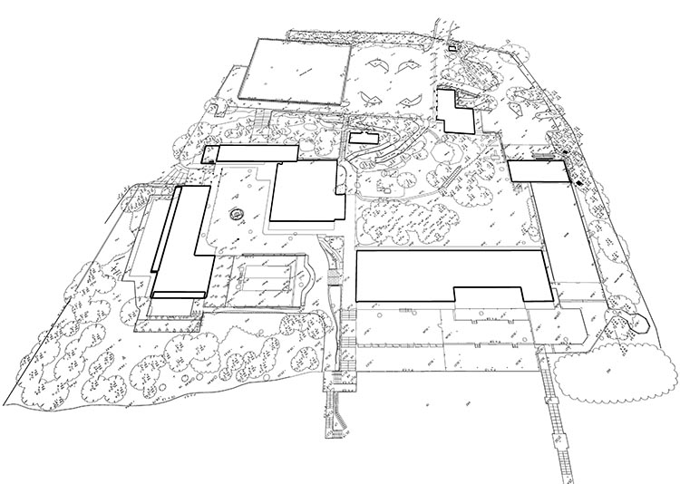 Dla pomiaru obszaru zewnętrznego wykonano mapę topograficzną 2D. Natomiast dla budynków znajdujących się na obszarze opracowania wyrysowano rzuty elewacji 2D. Dla zeskanowanych wnętrz budynków opracowano plany 2D każdego piętra.