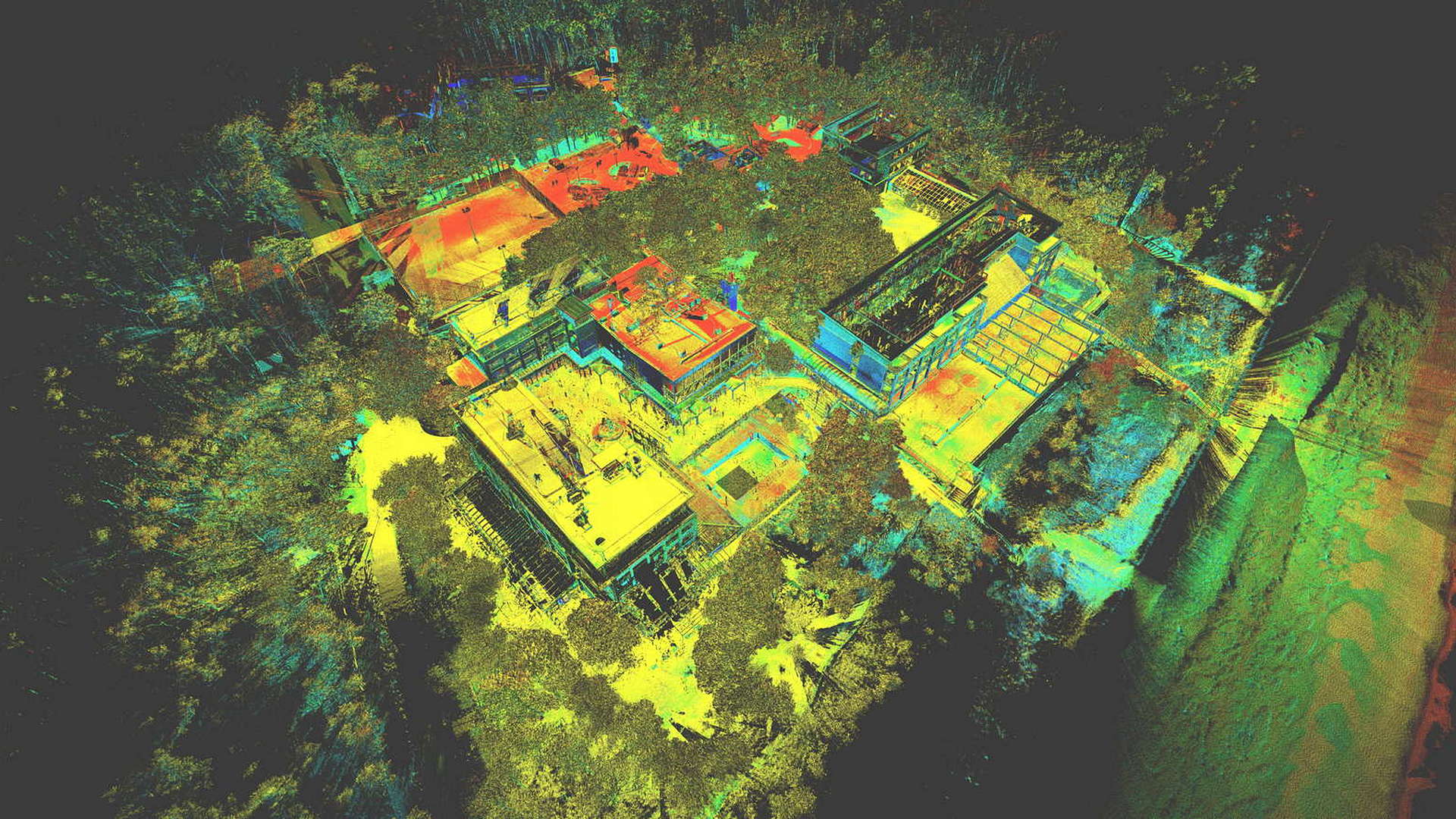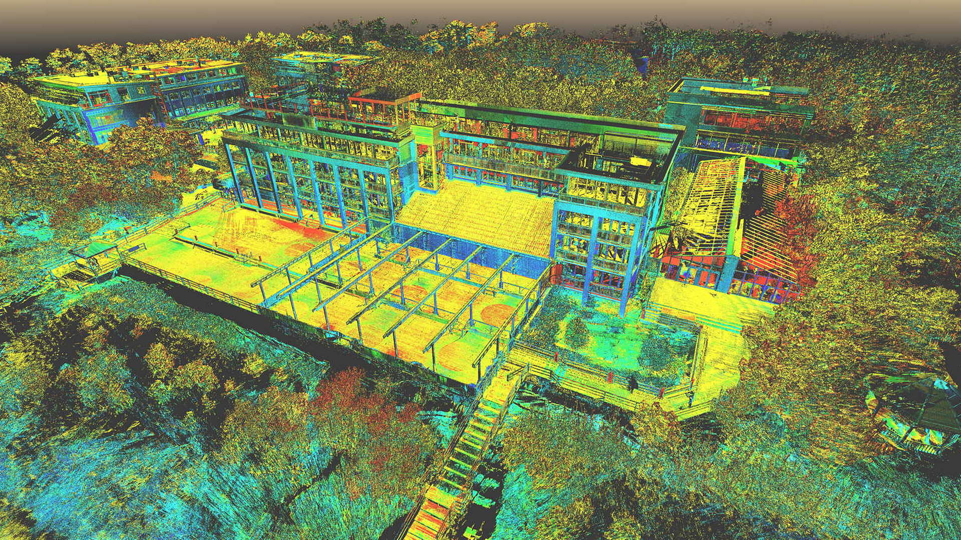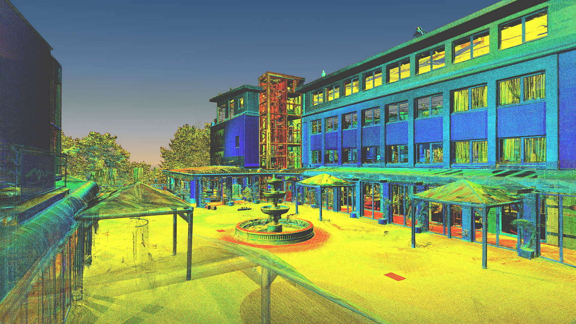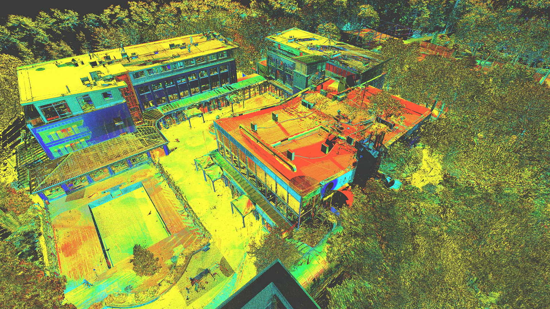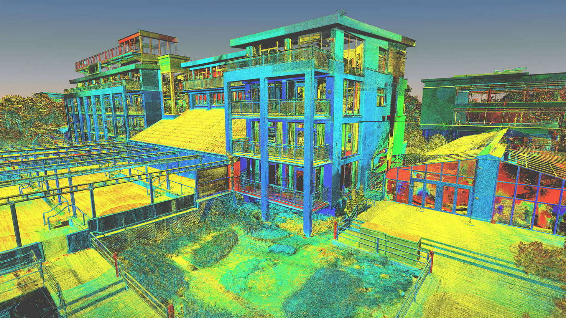 Dla pomiaru obszaru zewnętrznego wykonano mapę topograficzną 2D. Natomiast dla budynków znajdujących się na obszarze opracowania wyrysowano rzuty elewacji 2D. Dla zeskanowanych wnętrz budynków opracowano plany 2D każdego piętra.