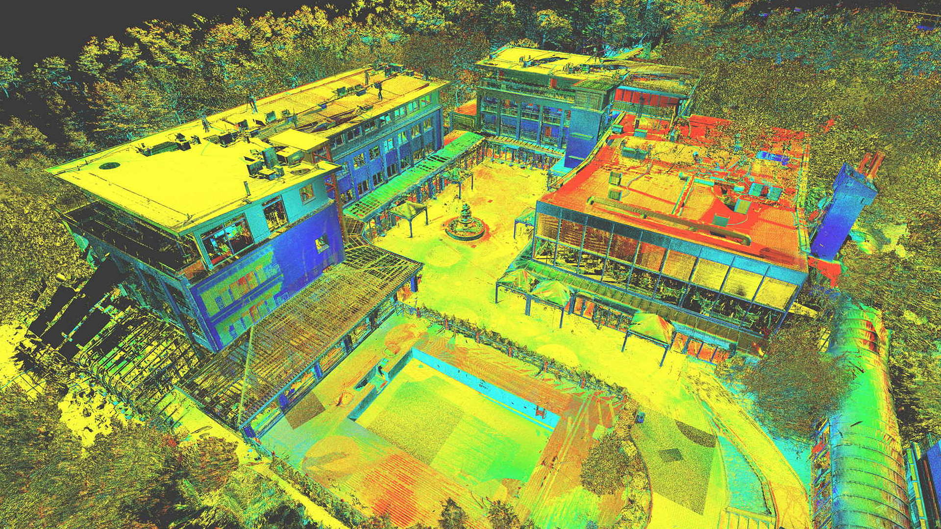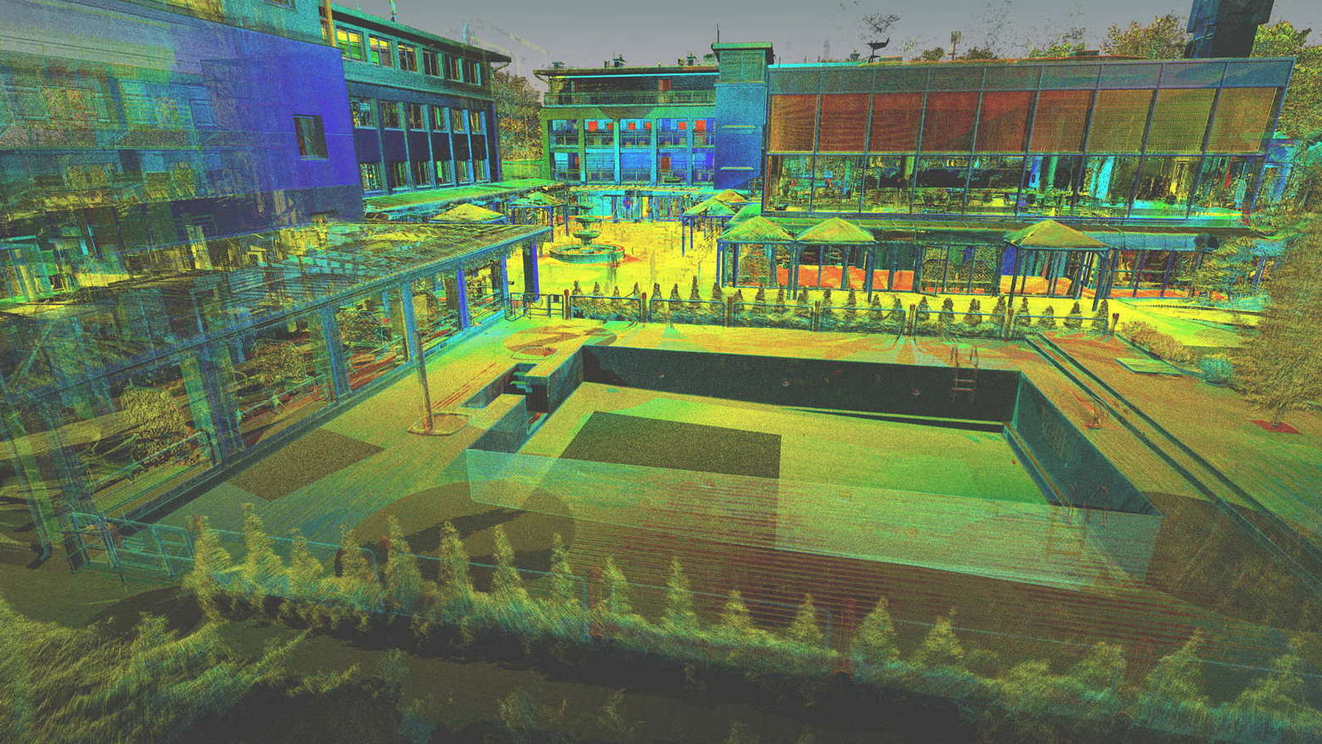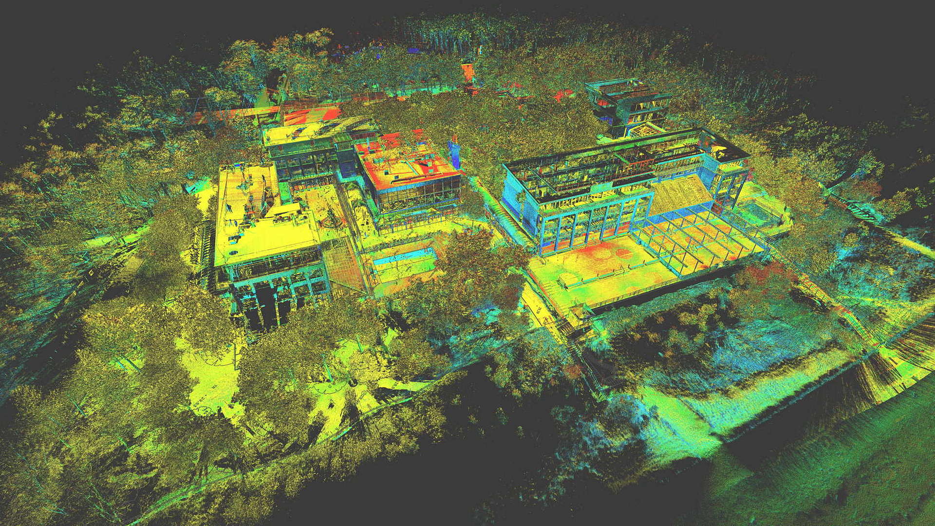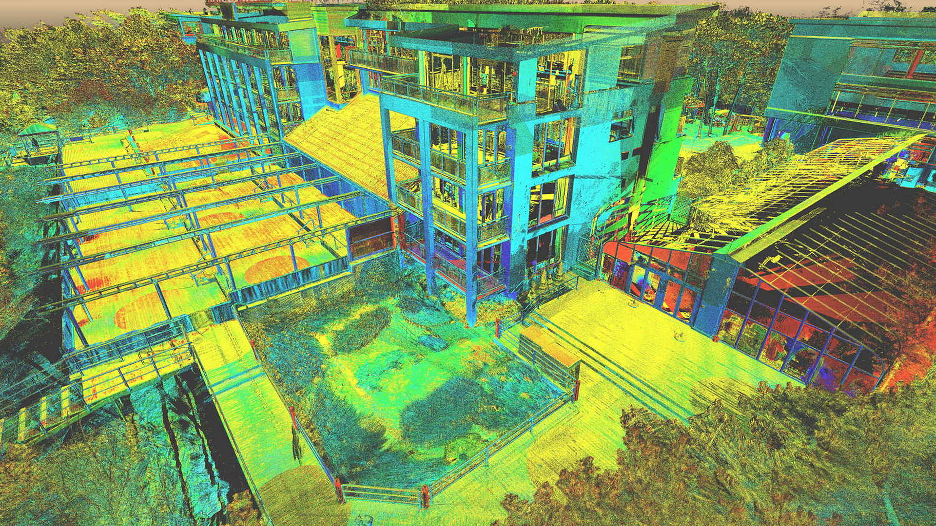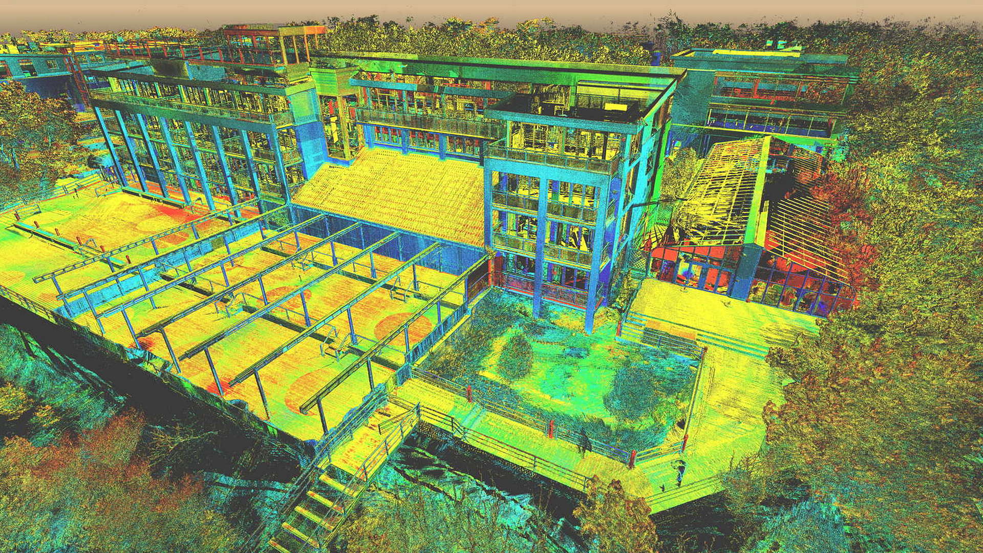 Dla pomiaru obszaru zewnętrznego wykonano mapę topograficzną 2D. Natomiast dla budynków znajdujących się na obszarze opracowania wyrysowano rzuty elewacji 2D. Dla zeskanowanych wnętrz budynków opracowano plany 2D każdego piętra.