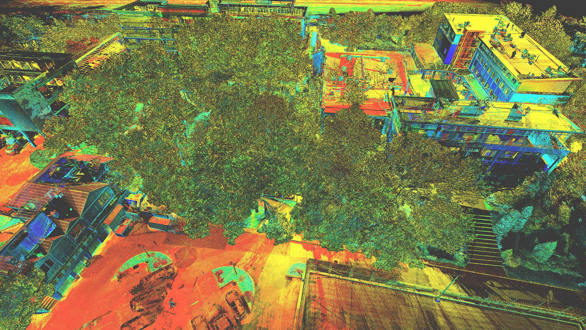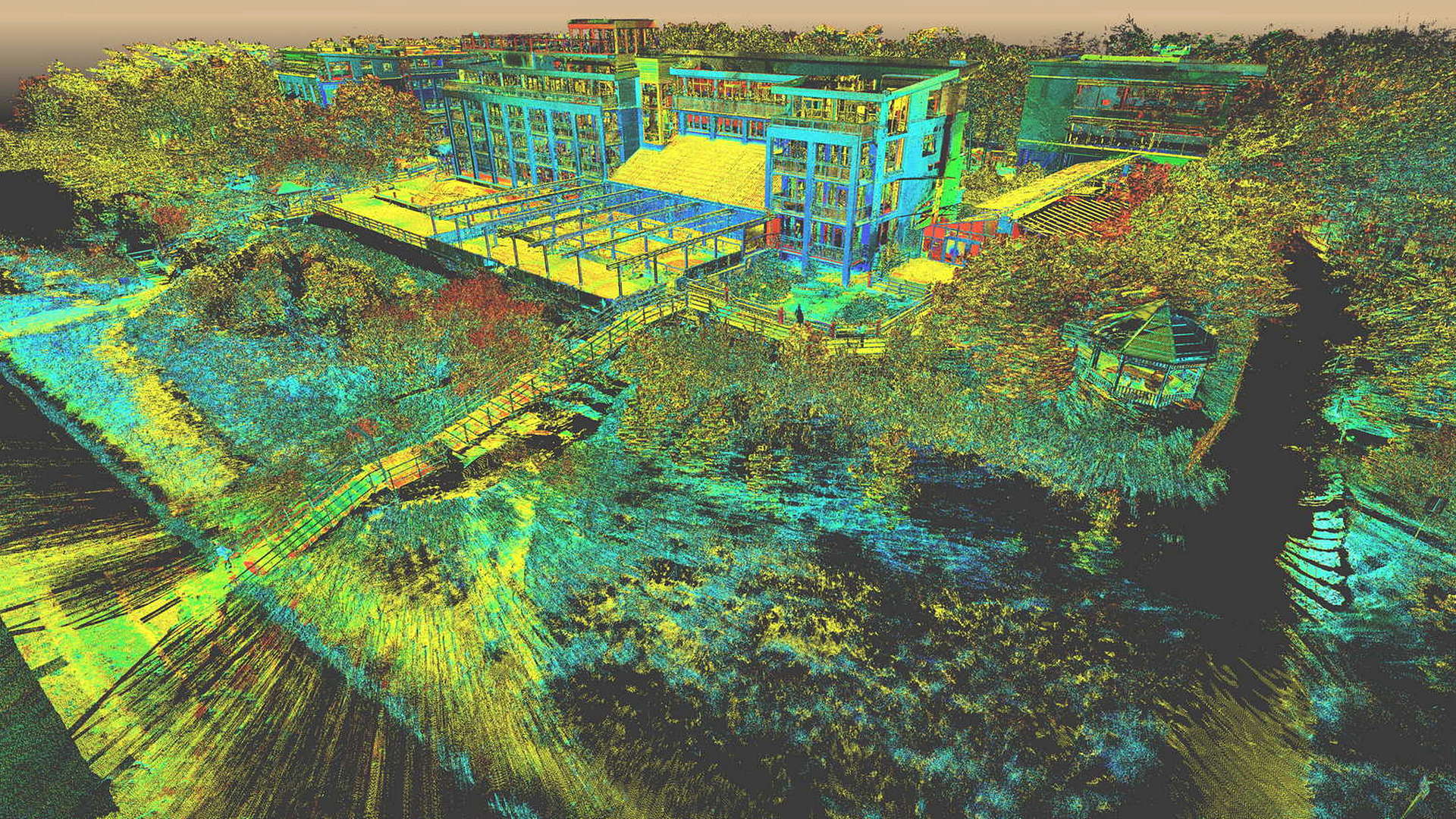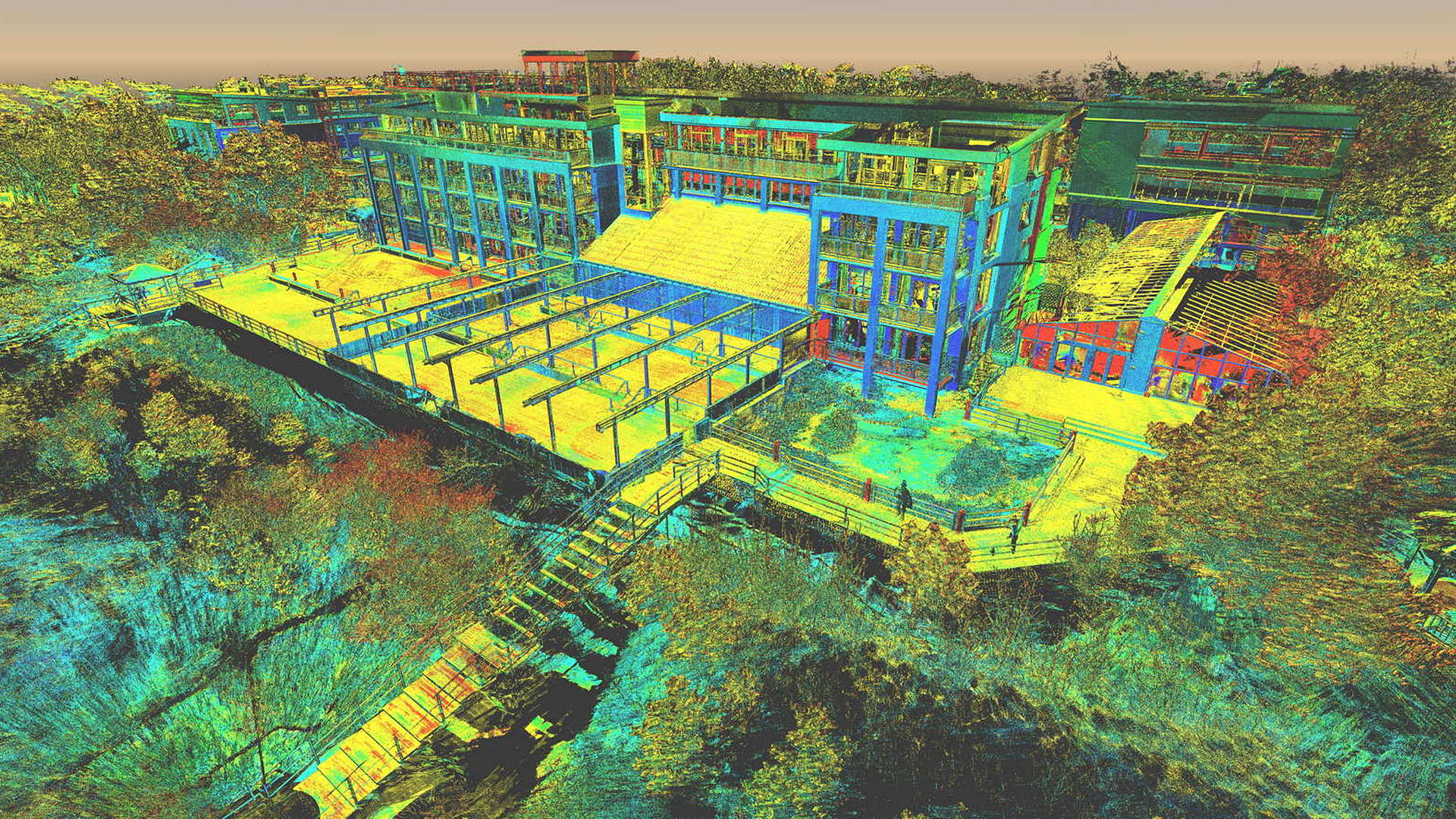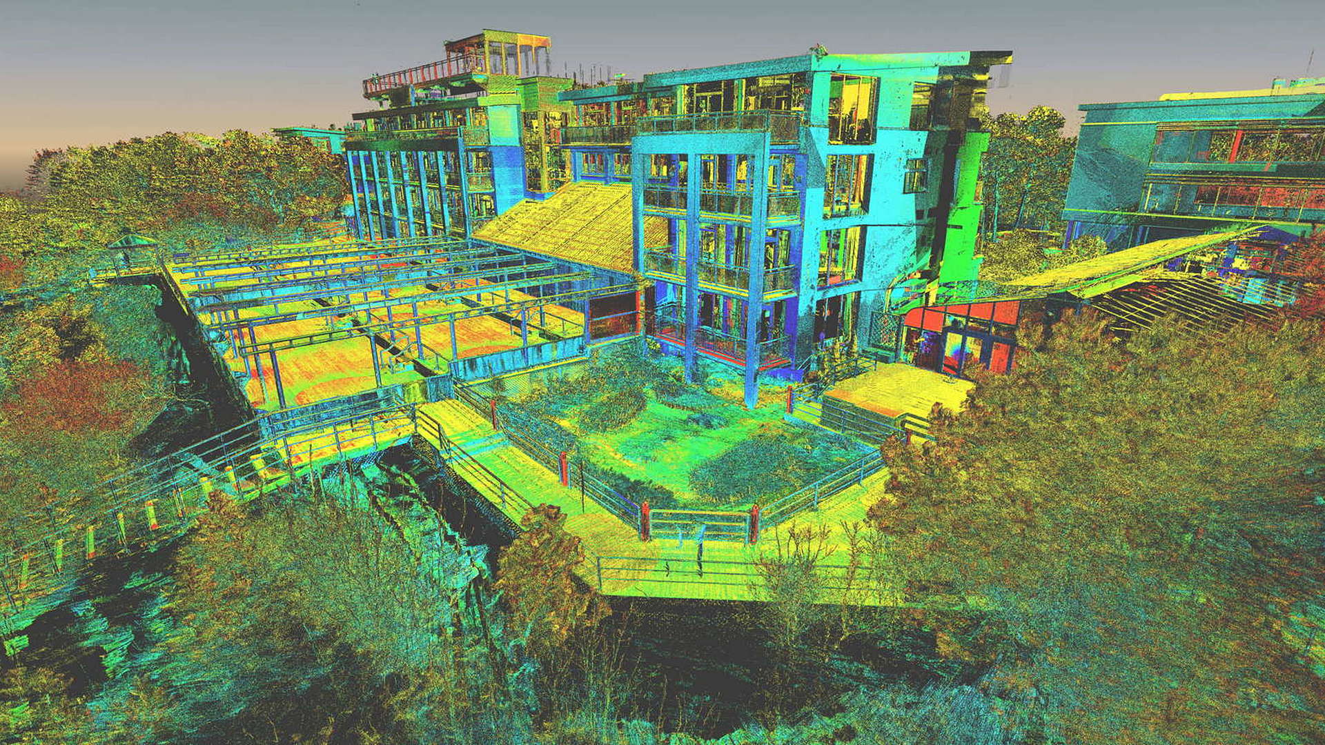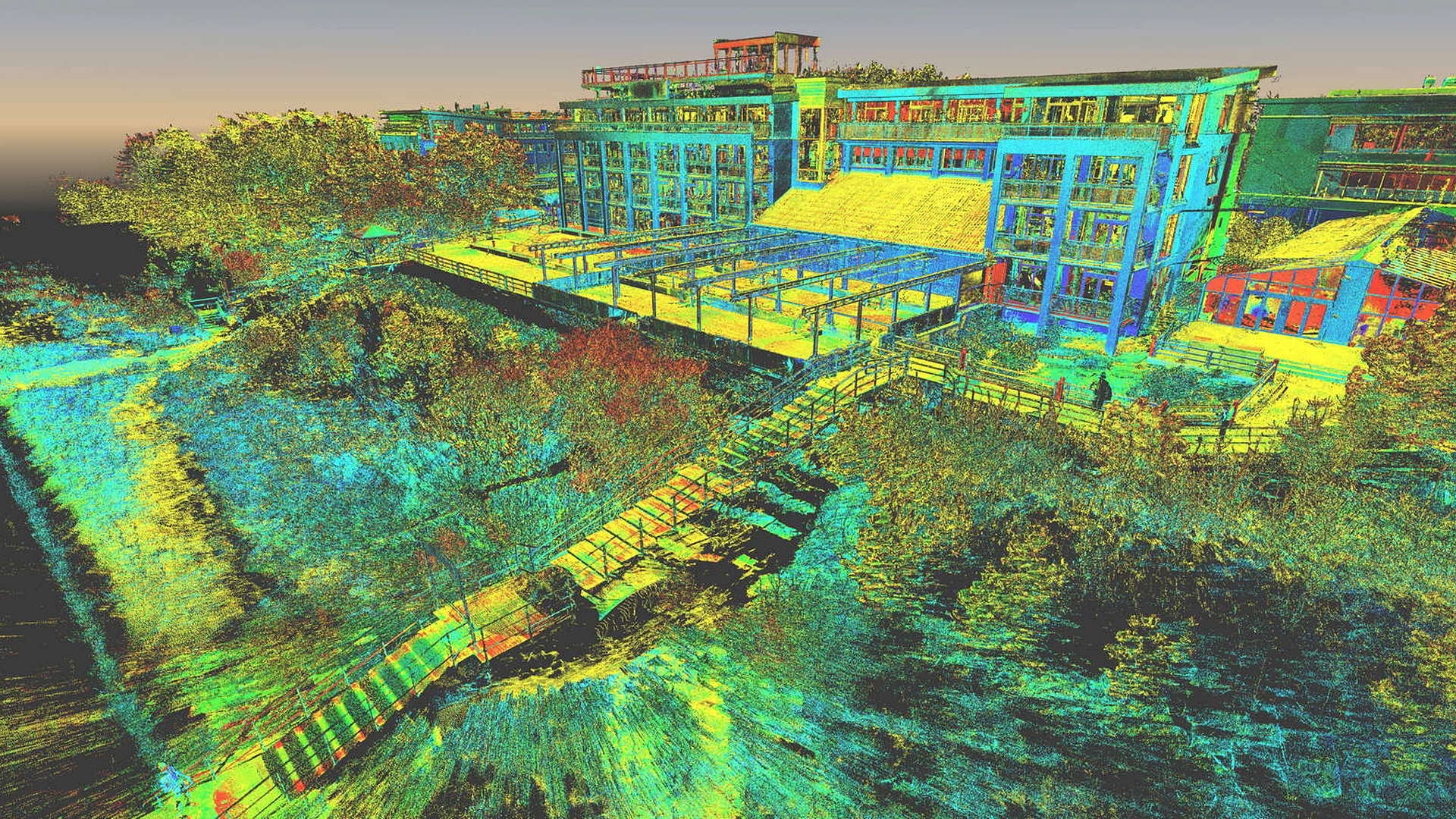 Dla pomiaru obszaru zewnętrznego wykonano mapę topograficzną 2D. Natomiast dla budynków znajdujących się na obszarze opracowania wyrysowano rzuty elewacji 2D. Dla zeskanowanych wnętrz budynków opracowano plany 2D każdego piętra.