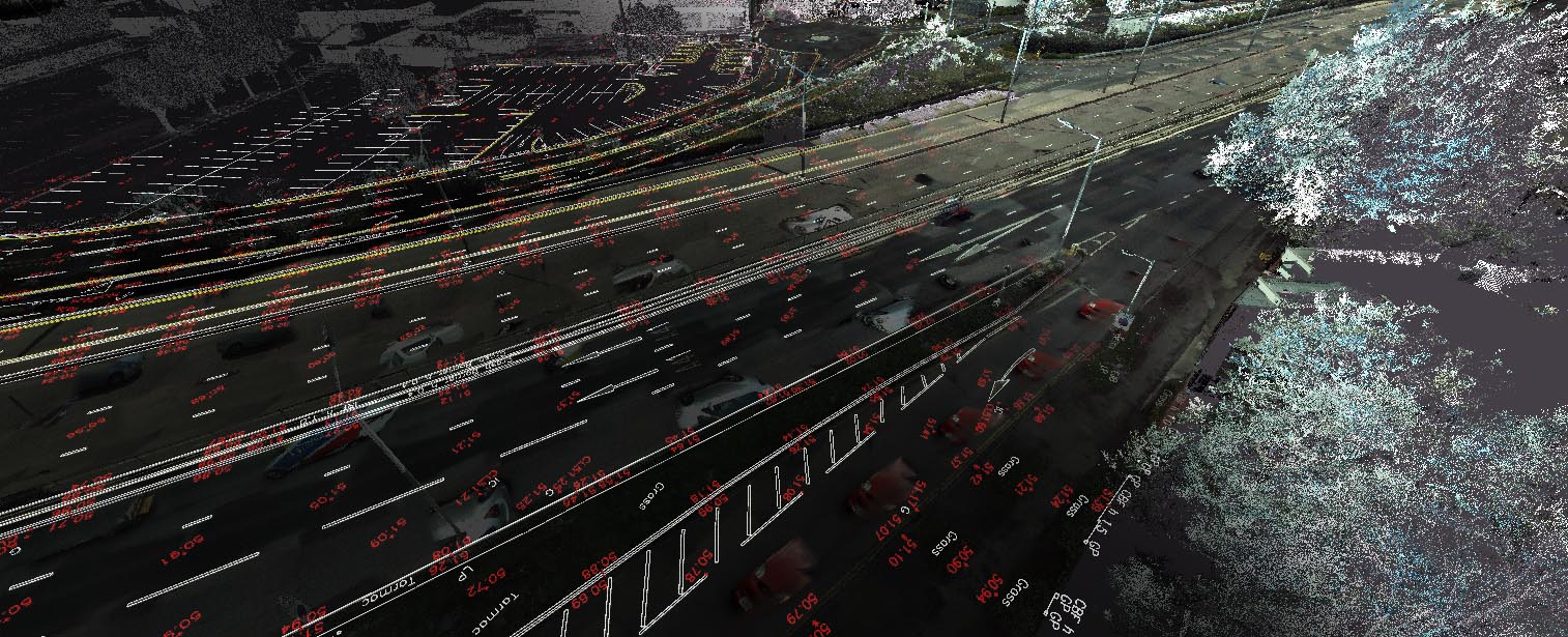 Klient dostarczył surowe dane w postaci chmur punktów (RGB) z mobilnego skaningu laserowego oraz zdjęcia z geolokalizacją