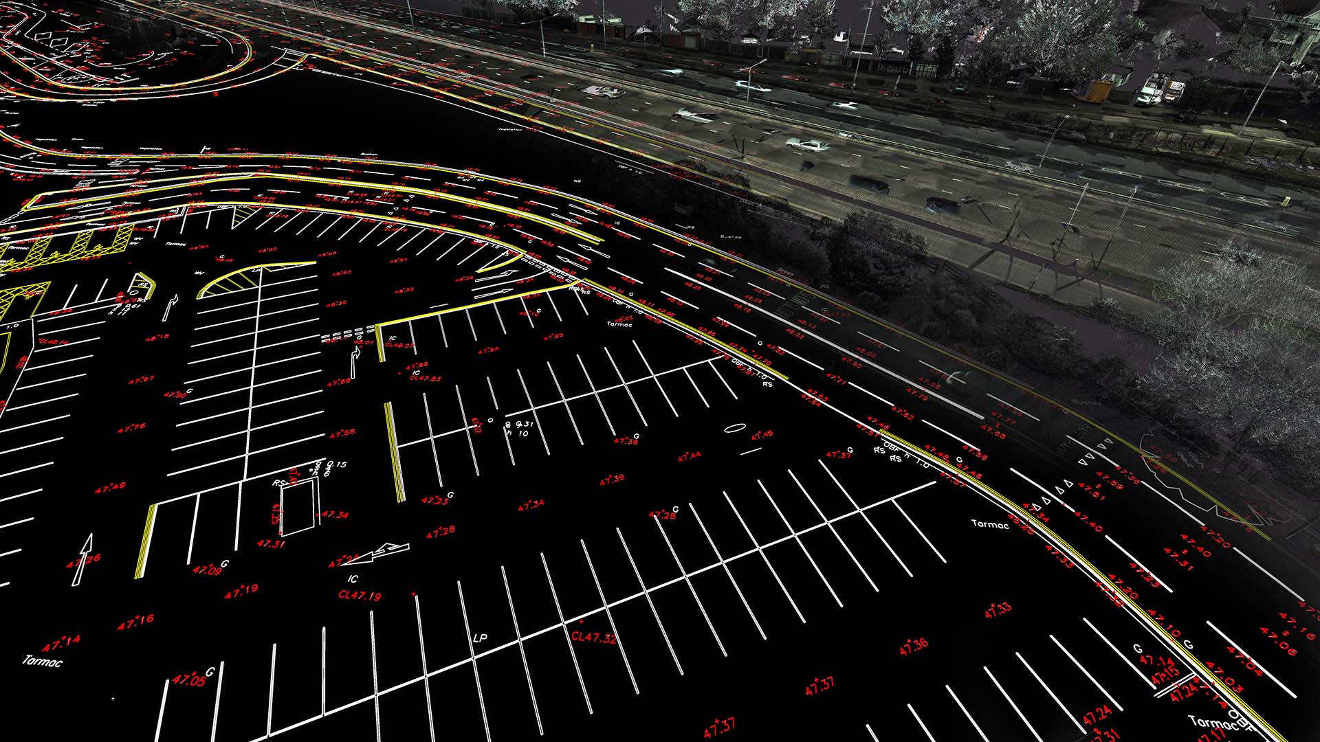 Klient dostarczył surowe dane w postaci chmur punktów (RGB) z mobilnego skaningu laserowego oraz zdjęcia z geolokalizacją. Skaning mobilny pokrył tylko powierzchnię ulicy oraz bezpośrednio przylegające chodniki. Zakres opracowania mapy 3D sięgał dalej poza obszar możliwie dostępny przez skaner mobilny, dlatego konieczne było przeprowadzenie dodatkowego pomiaru. Obszary bez danych potrzebne do opracowania zostały uzupełnione pomiarem z naziemnego skaningu laserowego.