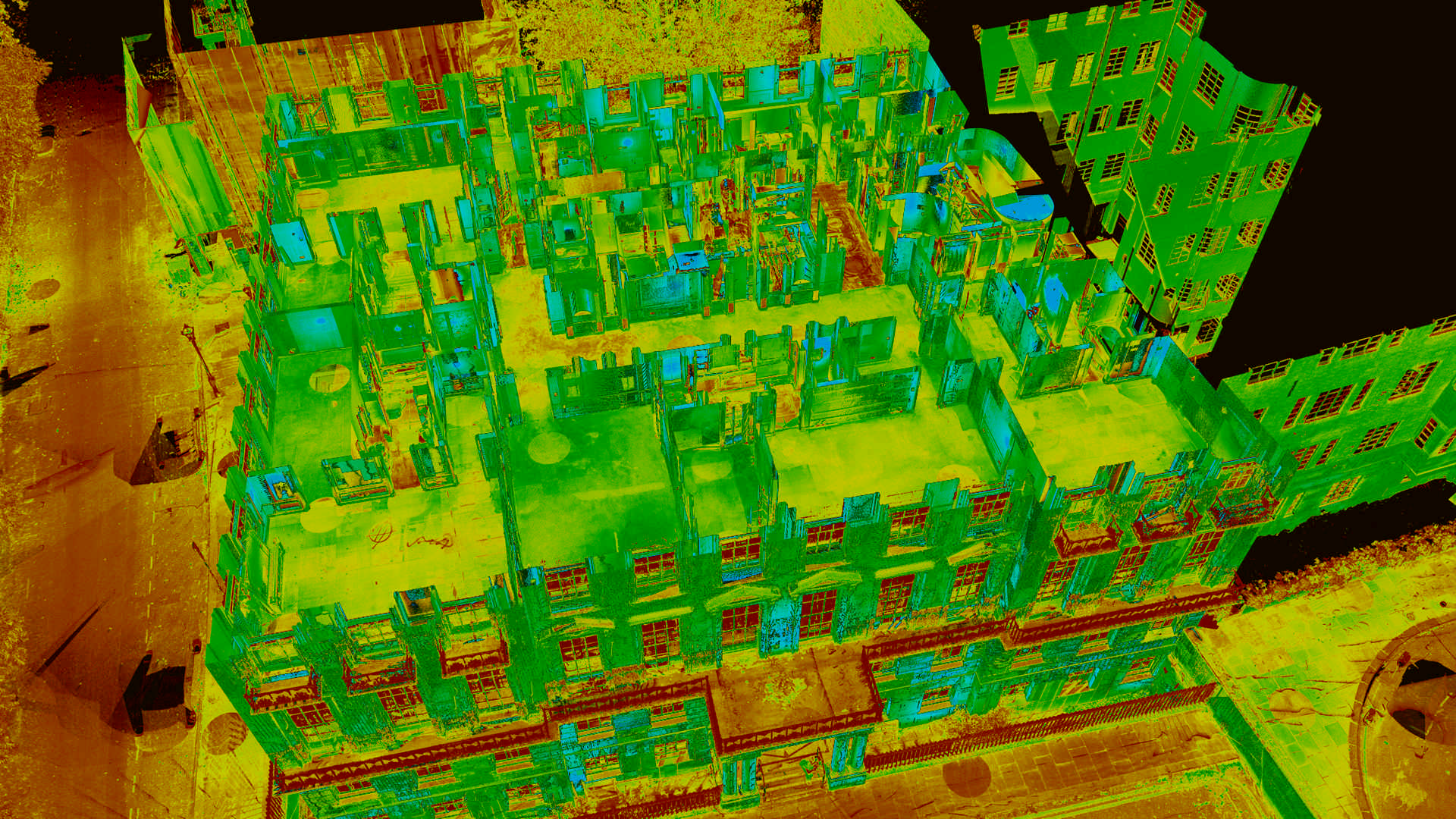 Dzięki naszemu zaangażowaniu w krótkim czasie przeprowadzono kompleksowe pomiary i wykonano 750 skanów laserowych ogromnej, siedmiopiętrowej nieruchomości z 45 sypialniami. Uzyskany zestaw danych i połączona chmura punktów 3D zostały następnie wykorzystane do zbudowania niezwykle szczegółowego modelu BIM Revit istniejącego budynku. Finalnie wraz z zestawem 360 zdjęć fotograficznych całego obiektu, posłużył on do wygenerowania Leica Truviews.