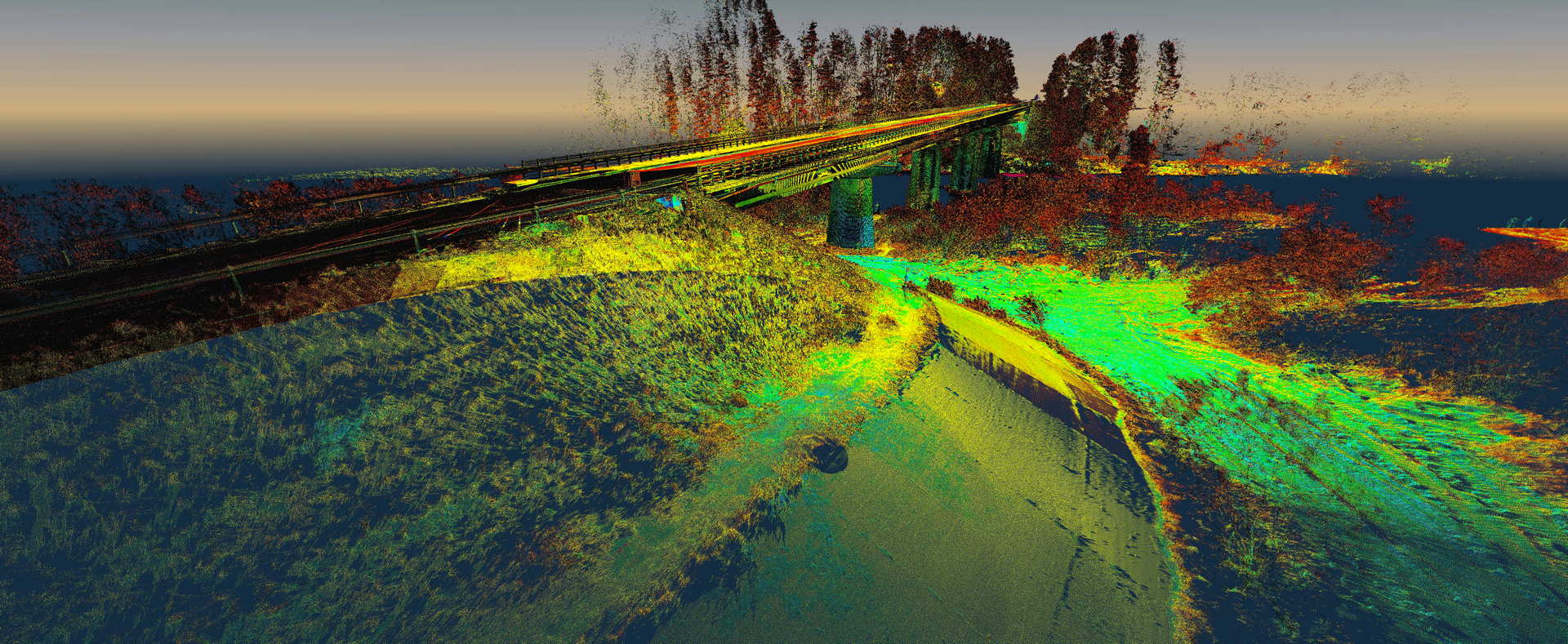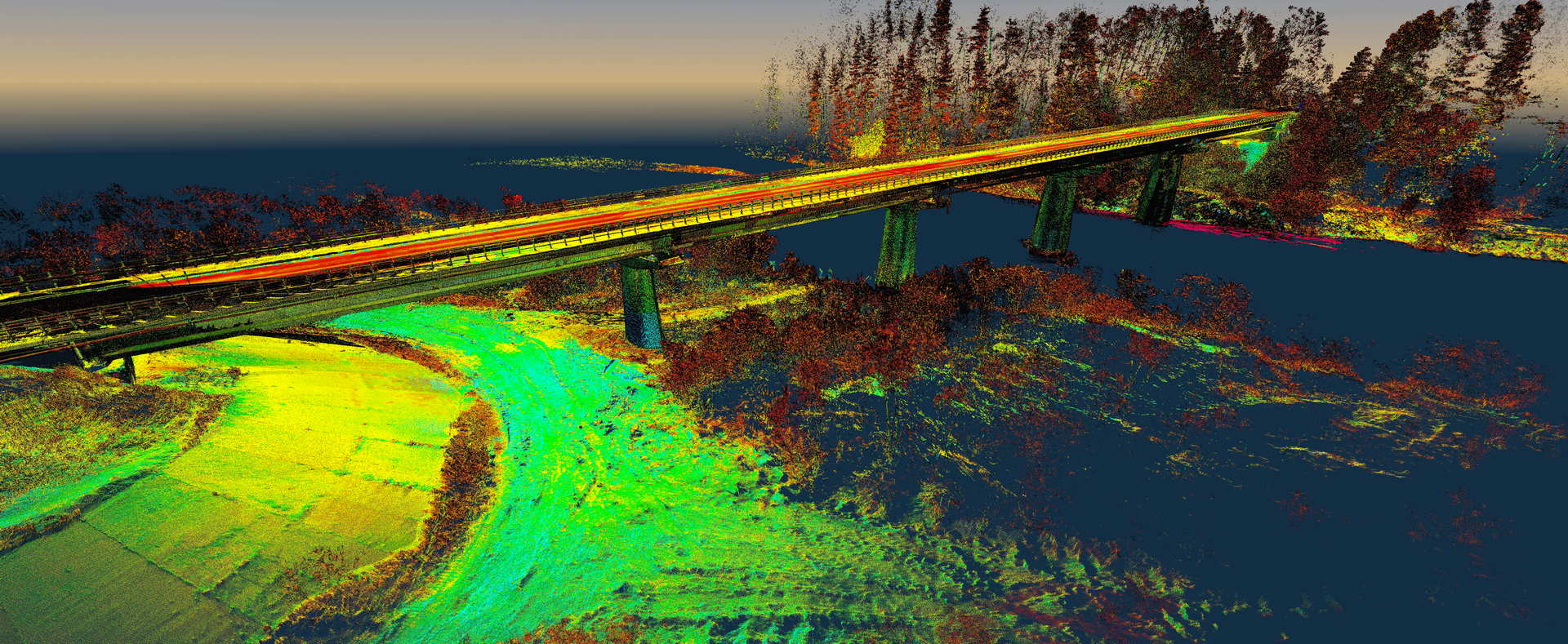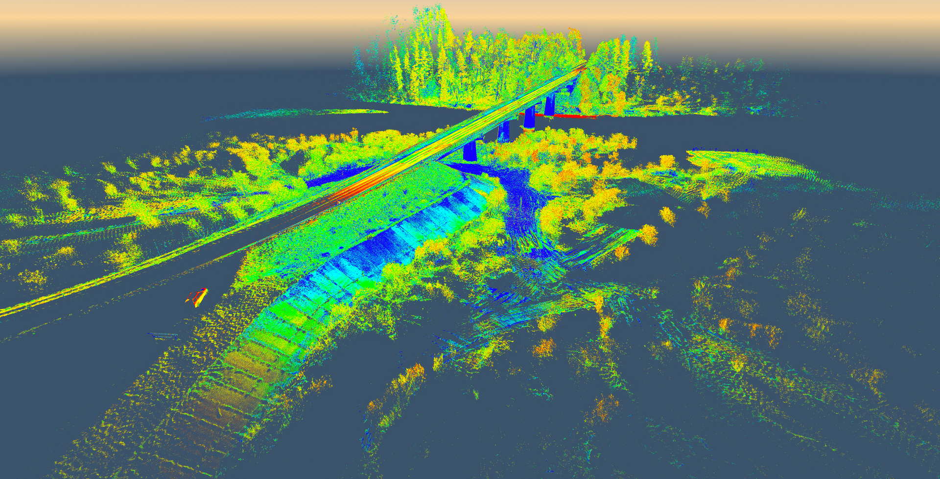Skaning laserowy mostu na rzece Dunajec