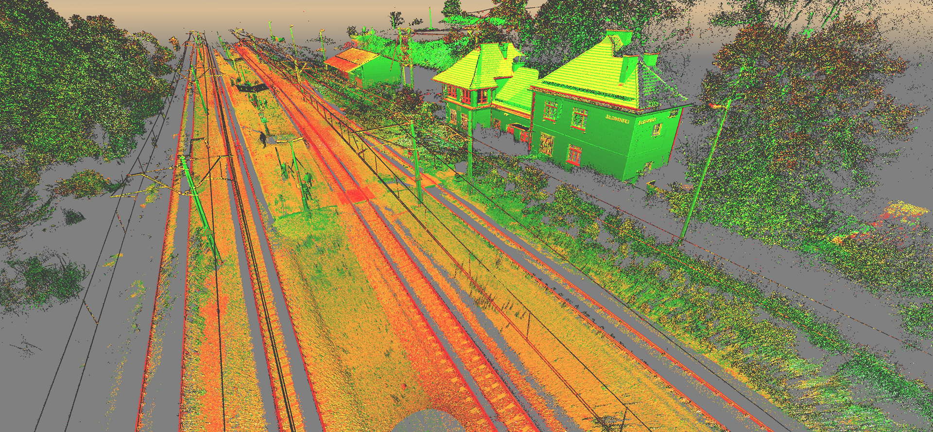 We współpracy z Politechniką Krakowską przeprowadziliśmy eksperymentalne badania obiektów infrastruktury kolejowej na stacji Słomniki. Celem projektu było określenie możliwości wykorzystania skanowania laserowego 3D do weryfikacji minimalnej odległości skrajni kolejowej do torów. Użyto skanera laserowego Riegl VZ-400 3D o zasięgu 500m. Wszystkie otrzymane dane w postaci chmury punktów zostały połączone i zorientowane w jednym układzie współrzędnych ze średnim błędem ± 5mm. Do procesu łączenia chmur punktów użyto dodatkowo pomierzonych punktów kontrolnych.