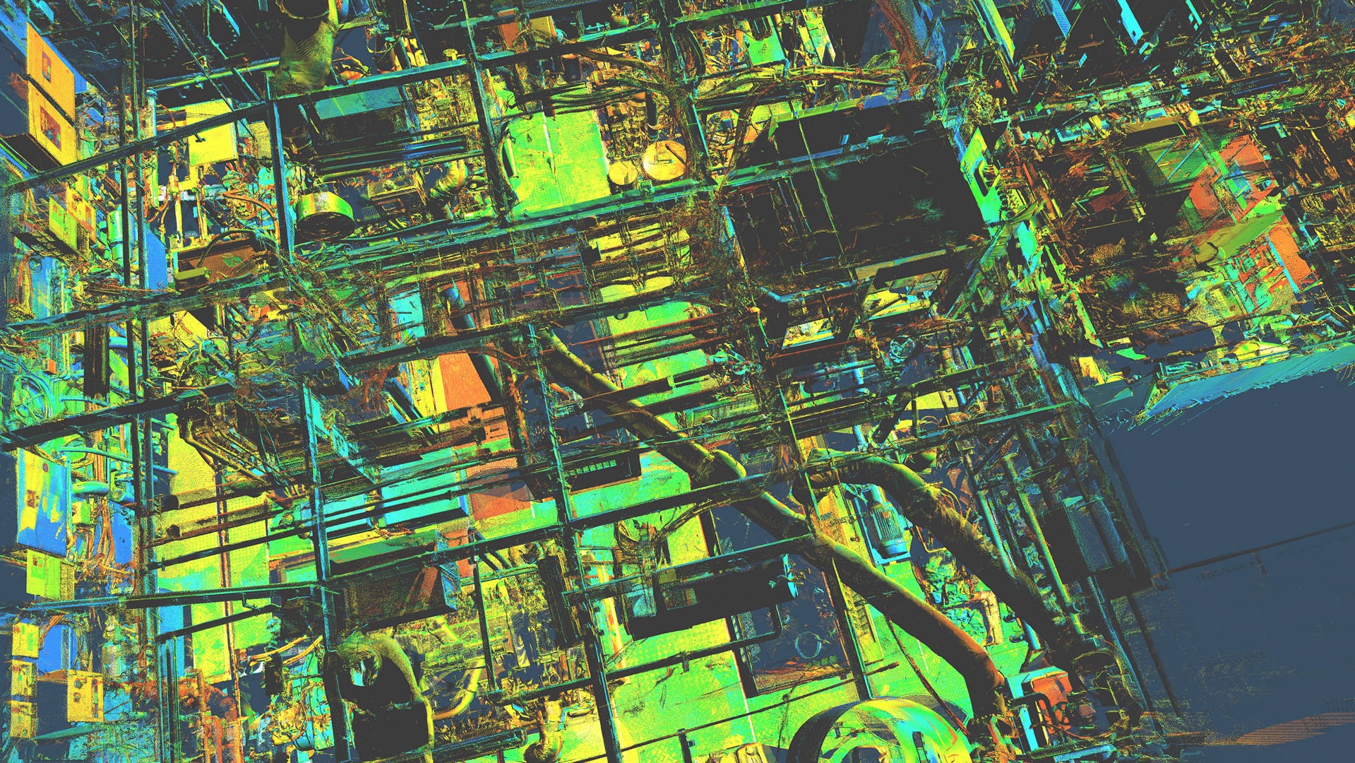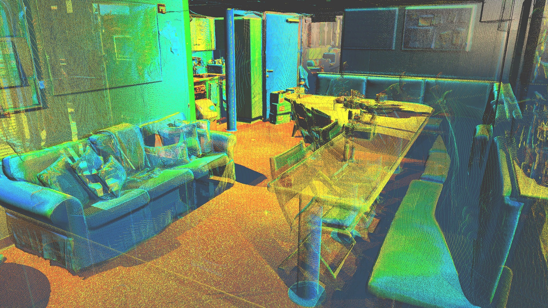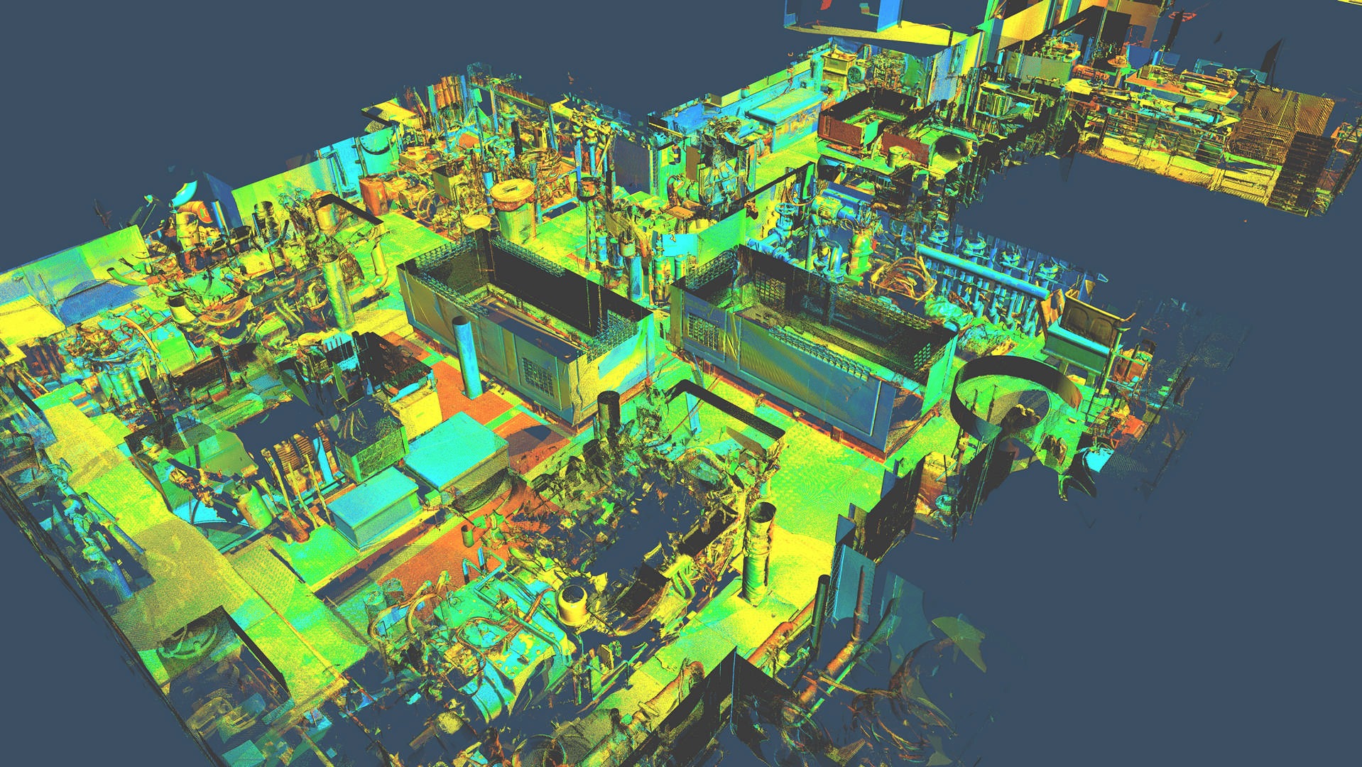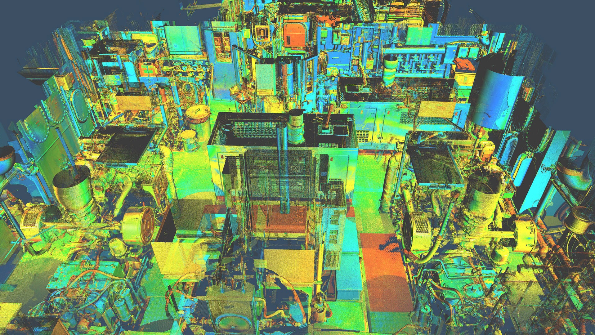 Połączona chmura punktów zorientowana w układzie statku, Trueview (częściowo w kolorze RGB)