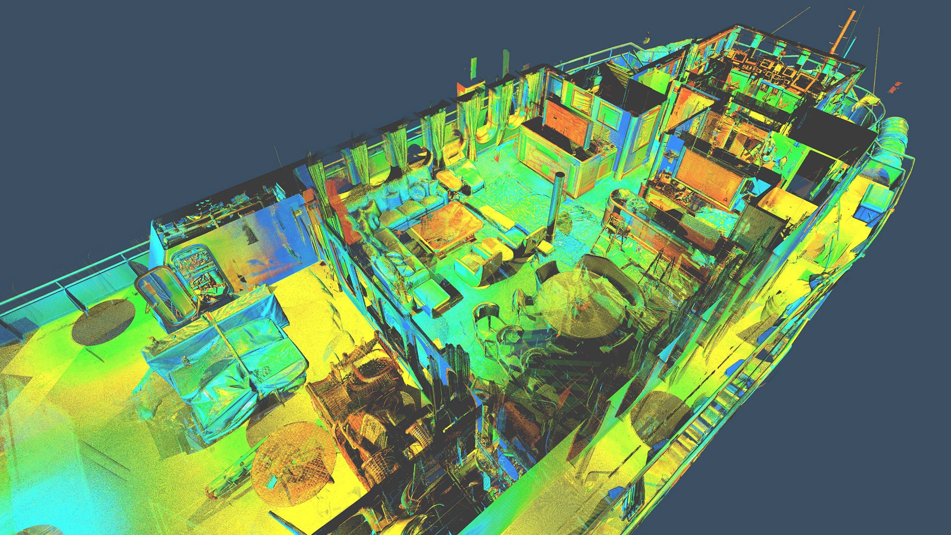 Skaning laserowy statku do przebudowy - Seszele