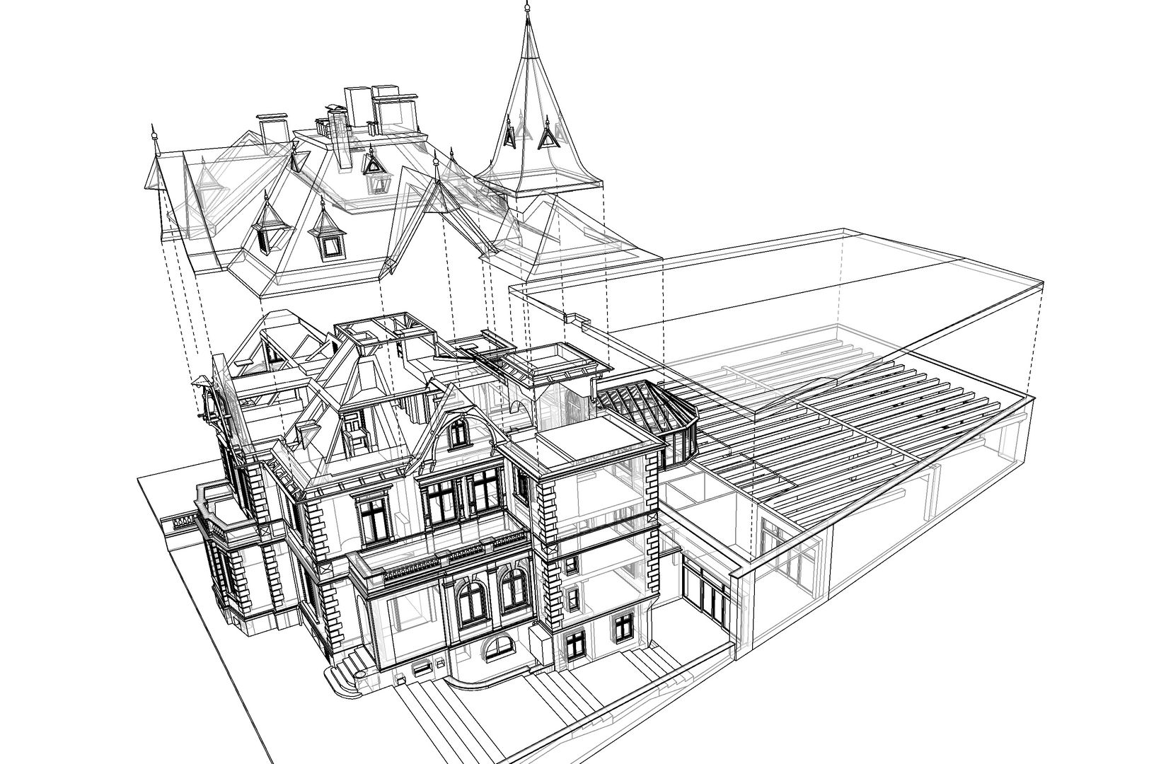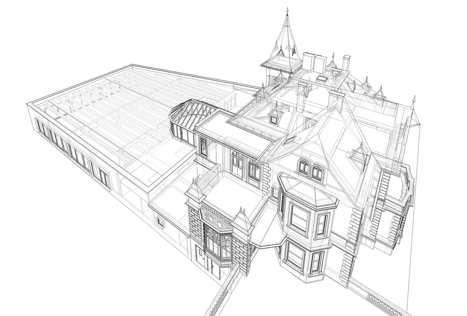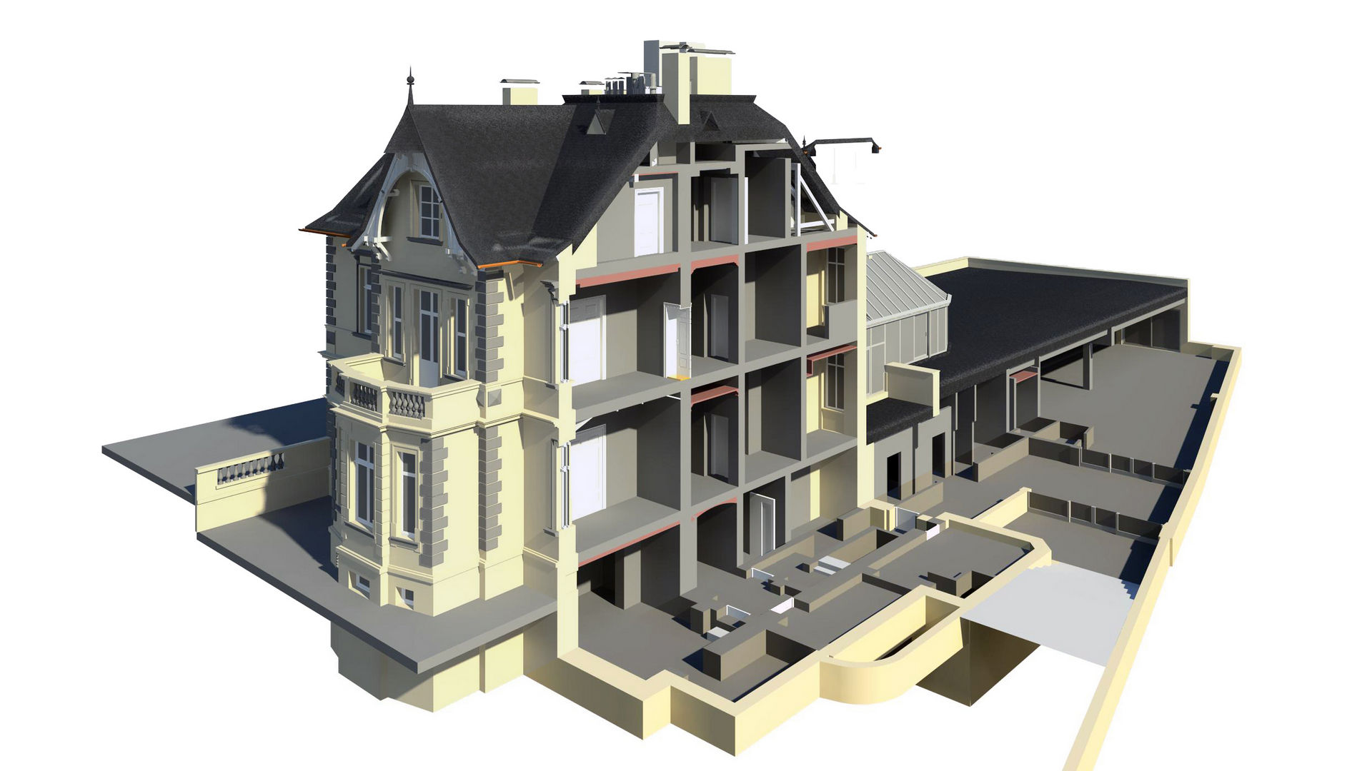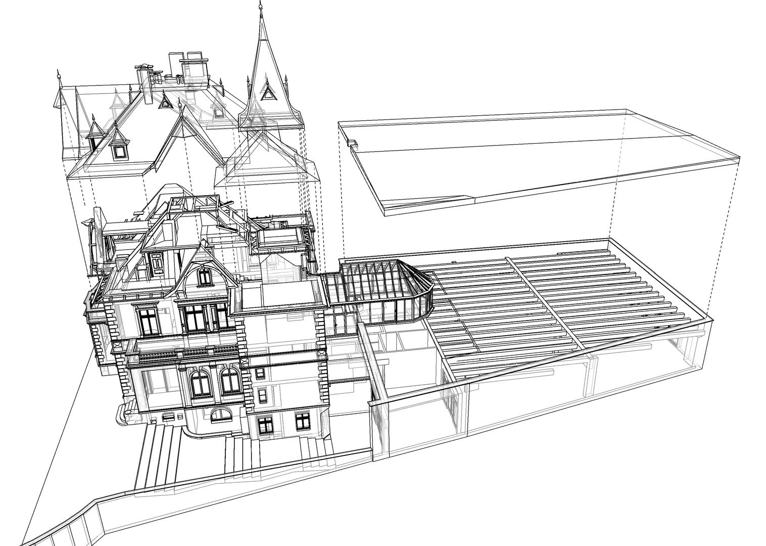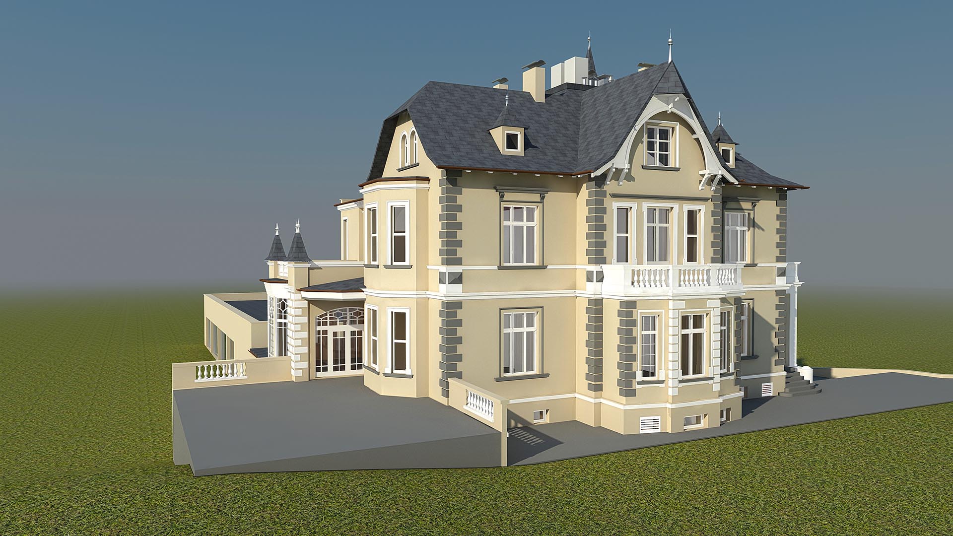 Jeden z nielicznych jak dotąd realizowanych projektów z zakresu BIM, na rynek Polski. Obiekt to zabytkowa willa do gruntownej przebudowy. Klient zlecił kompleksowe skanowanie obiektu na około 300 pojedynczych stanowiskach wraz z opracowaniem modelu 3D w oprogramowaniu Autodesk Revit (model BIM). Na podstawie modelu BIM, na poziomie szczegółowości LoD 3, wykonano dokumentację 2D. Obiekt złożony i niezwykle pracochłonny ze względu na niebanalna konstrukcję. Projekt okazał się bardziej wymagający niż zakładano na początku, przede wszystkim ze względu na czas potrzebny do pełnego opracowania. Jednakże efekt końcowy był bardzo satysfakcjonujący.