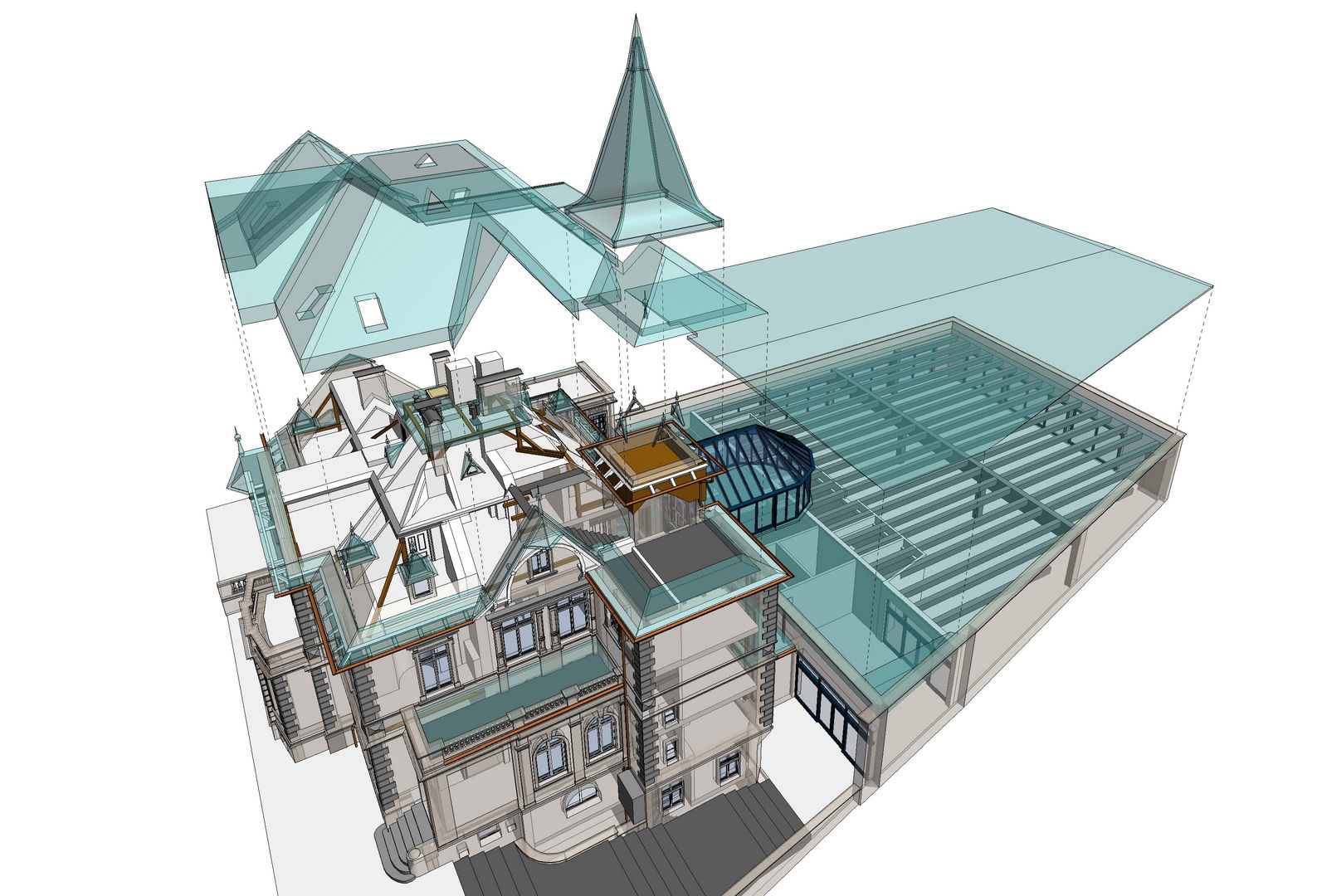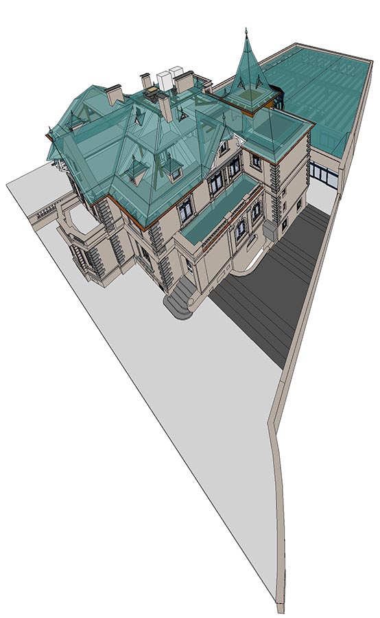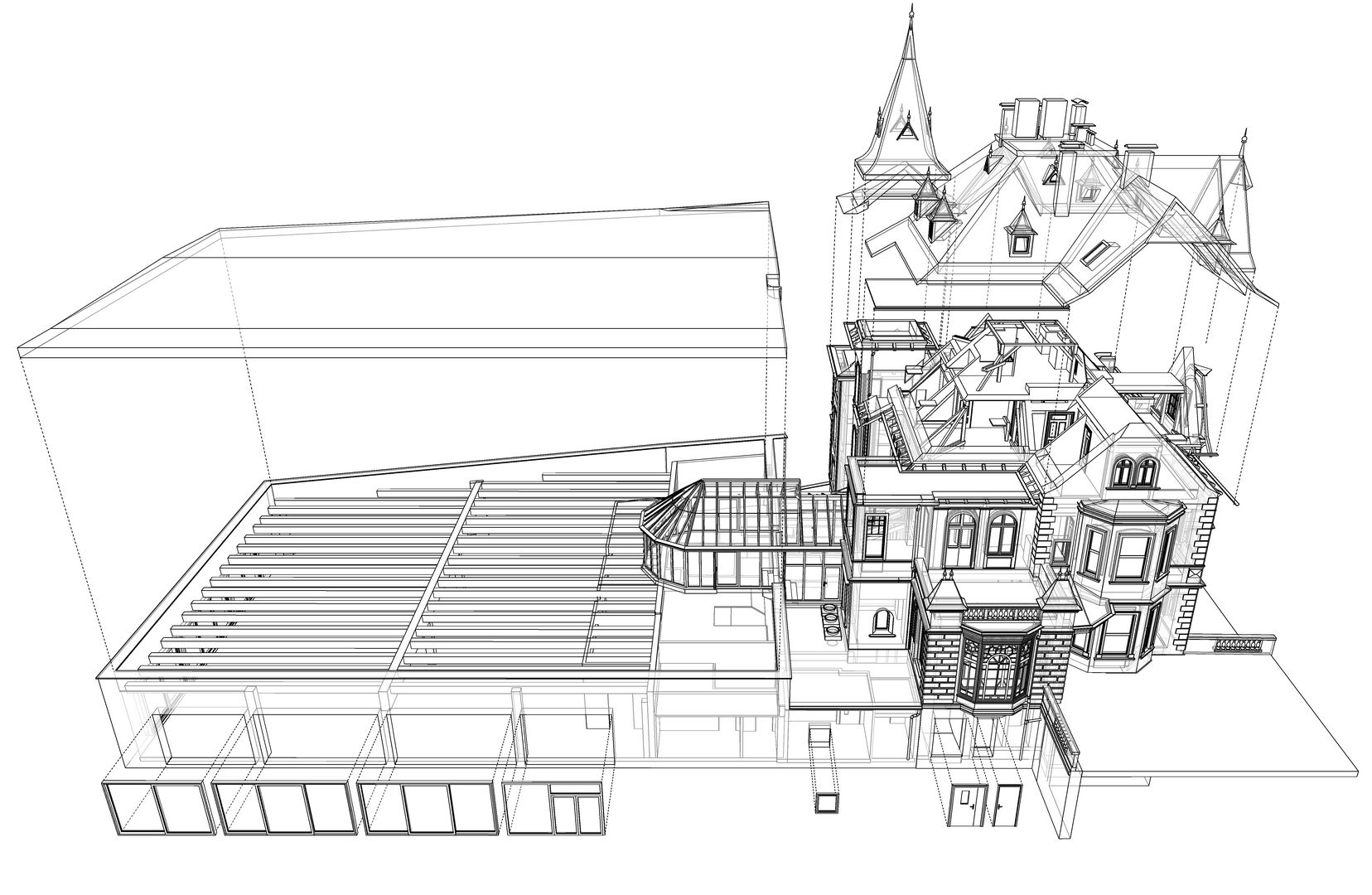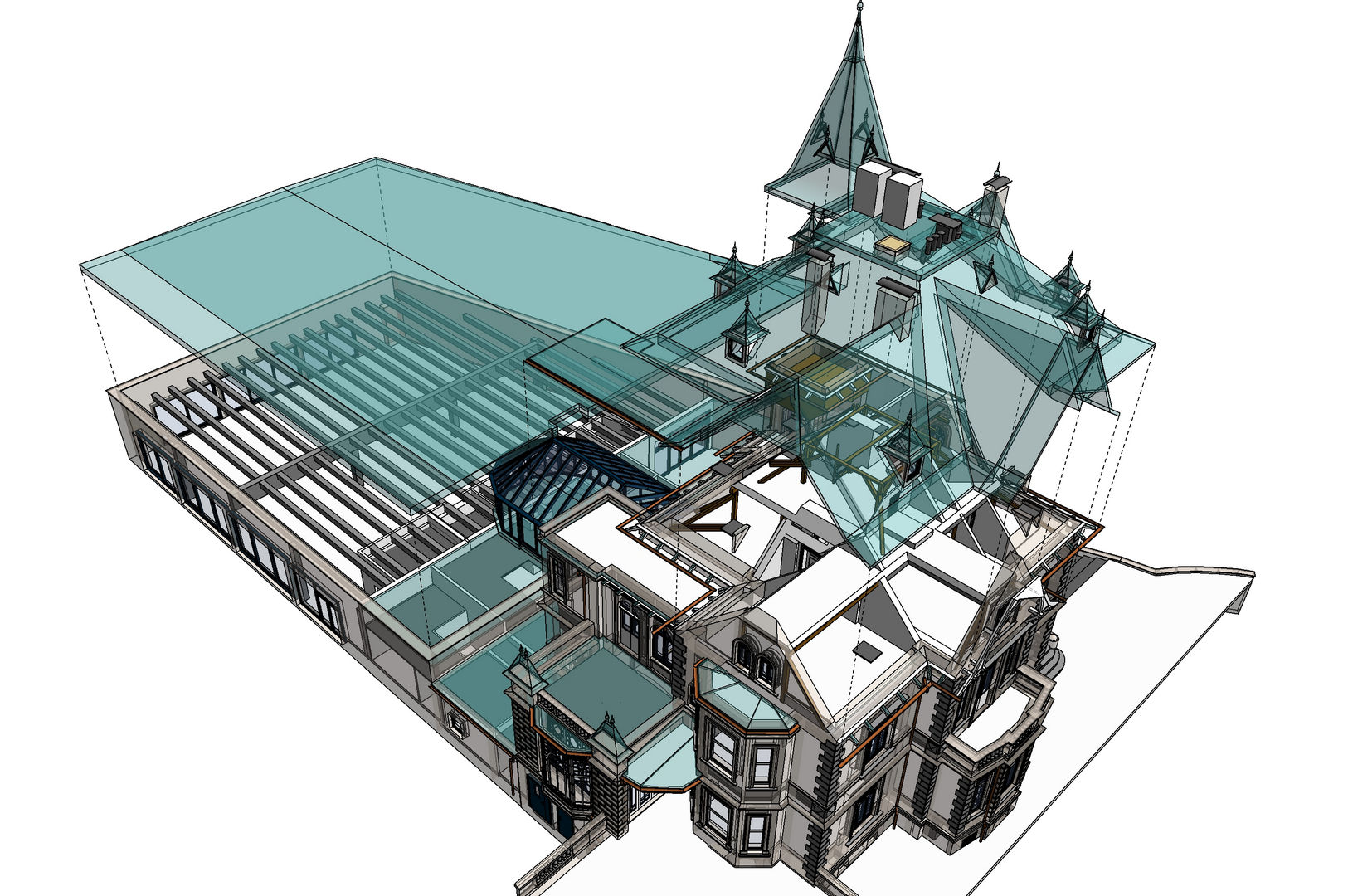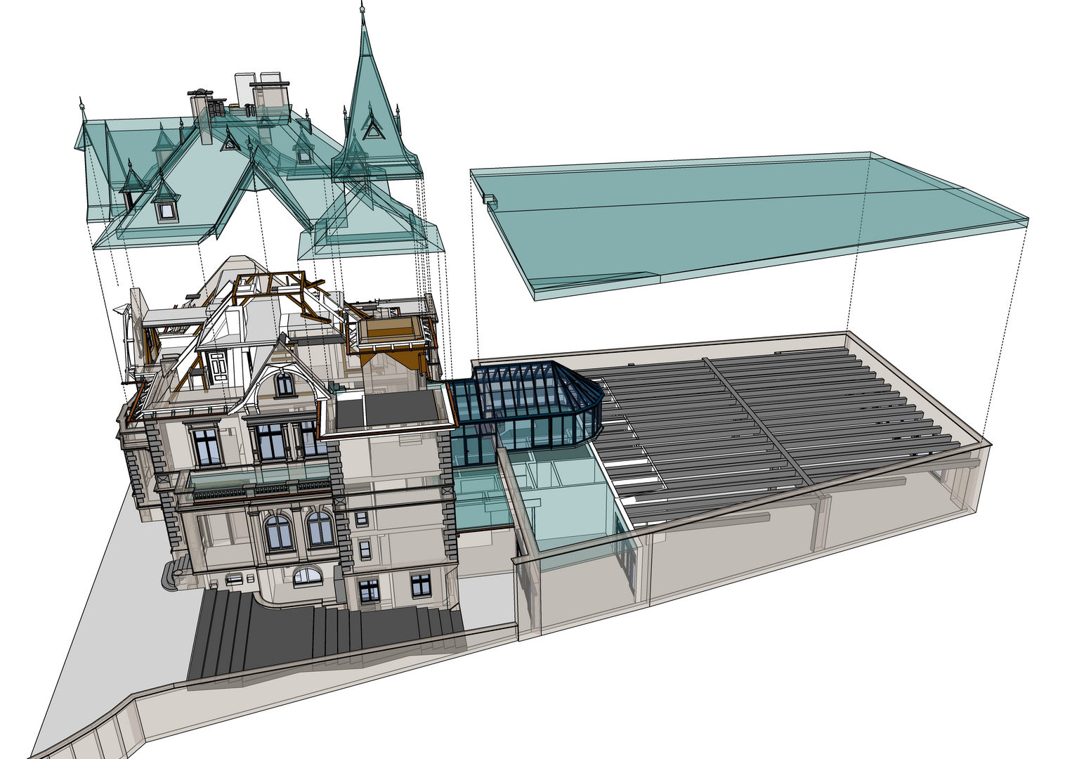 Jeden z nielicznych jak dotąd realizowanych projektów z zakresu BIM, na rynek Polski. Obiekt to zabytkowa willa do gruntownej przebudowy. Klient zlecił kompleksowe skanowanie obiektu na około 300 pojedynczych stanowiskach wraz z opracowaniem modelu 3D w oprogramowaniu Autodesk Revit (model BIM). Na podstawie modelu BIM, na poziomie szczegółowości LoD 3, wykonano dokumentację 2D. Obiekt złożony i niezwykle pracochłonny ze względu na niebanalna konstrukcję. Projekt okazał się bardziej wymagający niż zakładano na początku, przede wszystkim ze względu na czas potrzebny do pełnego opracowania. Jednakże efekt końcowy był bardzo satysfakcjonujący.