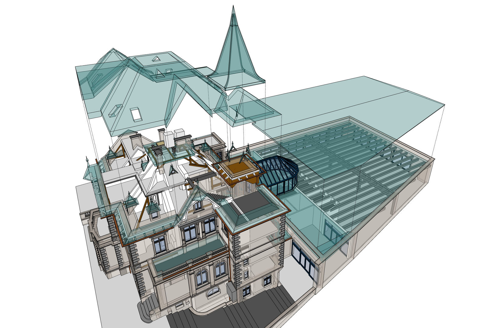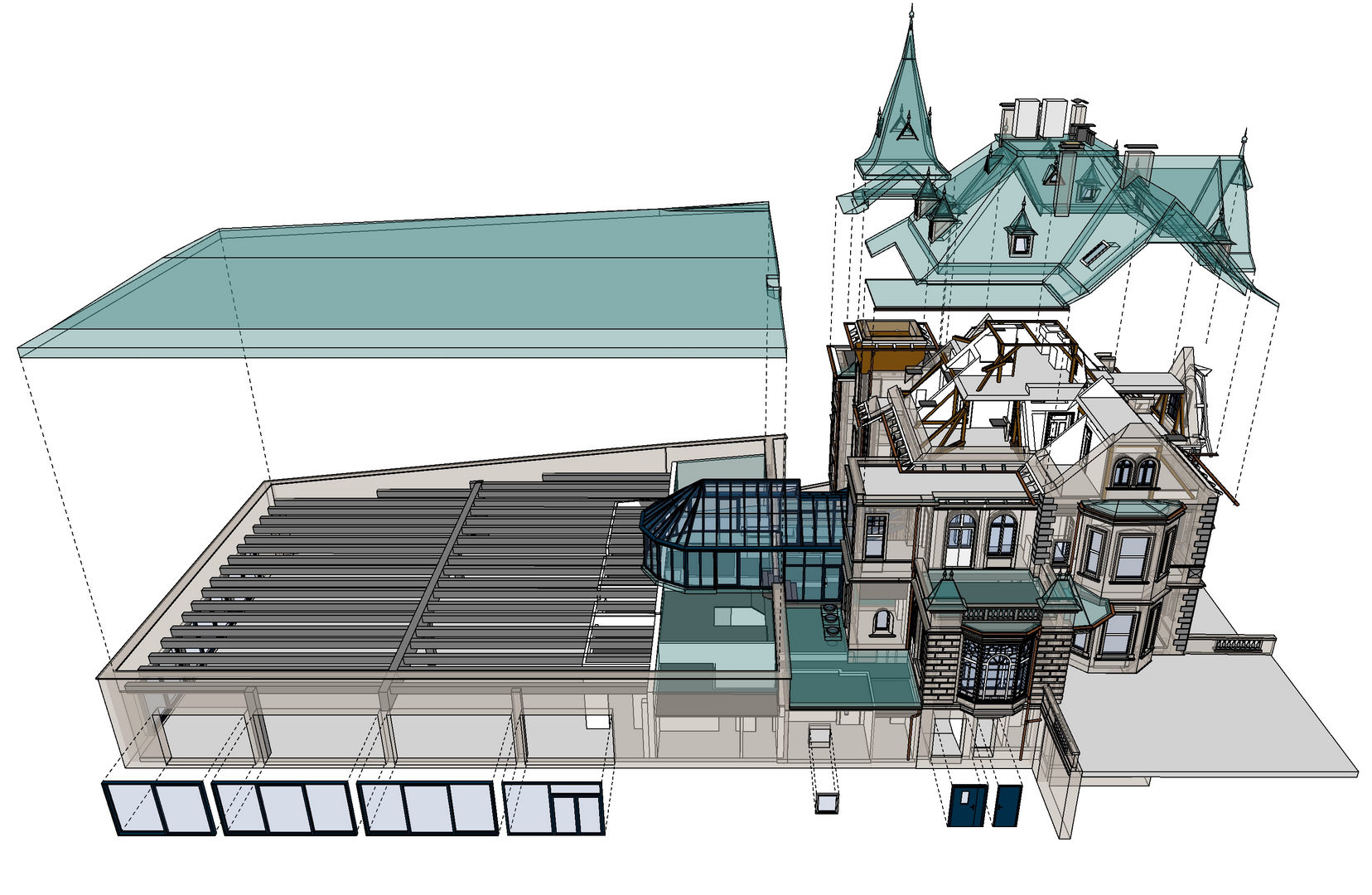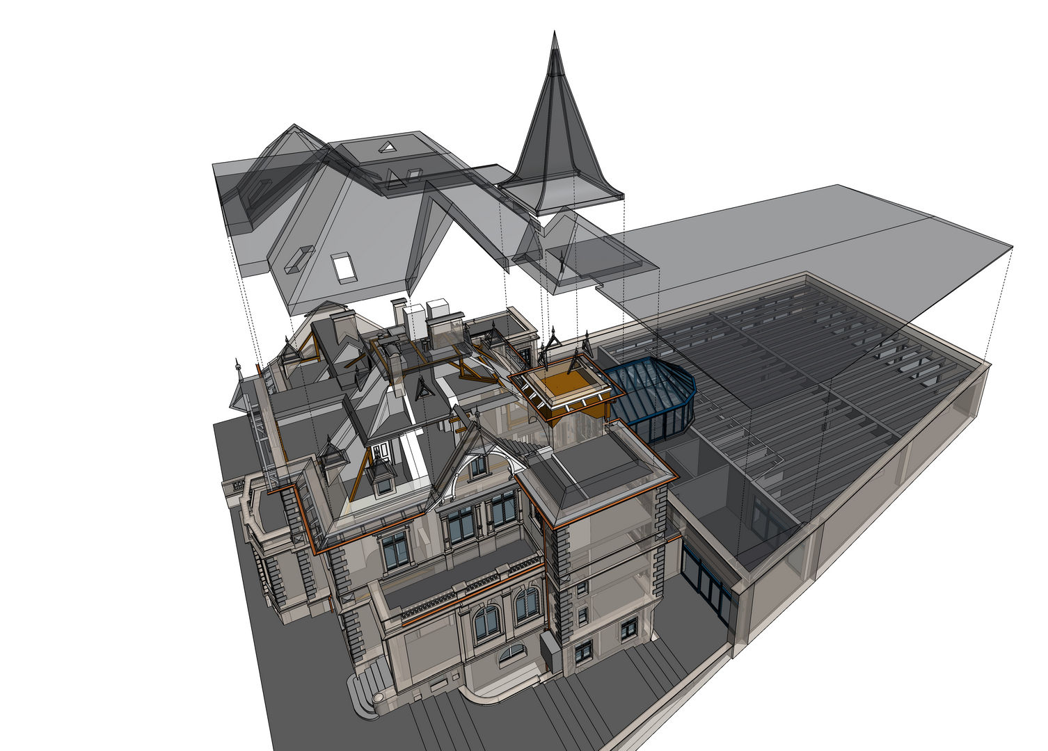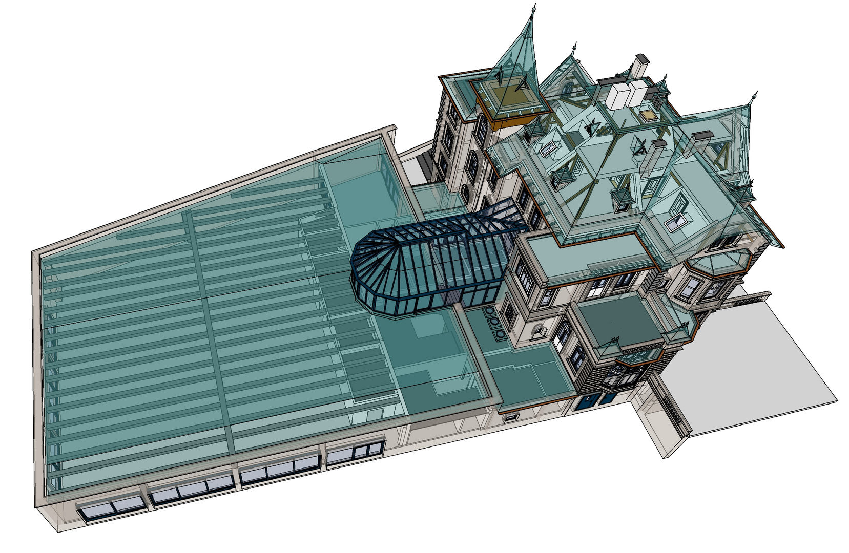 Jeden z nielicznych jak dotąd realizowanych projektów z zakresu BIM, na rynek Polski. Obiekt to zabytkowa willa do gruntownej przebudowy. Klient zlecił kompleksowe skanowanie obiektu na około 300 pojedynczych stanowiskach wraz z opracowaniem modelu 3D w oprogramowaniu Autodesk Revit (model BIM). Na podstawie modelu BIM, na poziomie szczegółowości LoD 3, wykonano dokumentację 2D. Obiekt złożony i niezwykle pracochłonny ze względu na niebanalna konstrukcję. Projekt okazał się bardziej wymagający niż zakładano na początku, przede wszystkim ze względu na czas potrzebny do pełnego opracowania. Jednakże efekt końcowy był bardzo satysfakcjonujący.