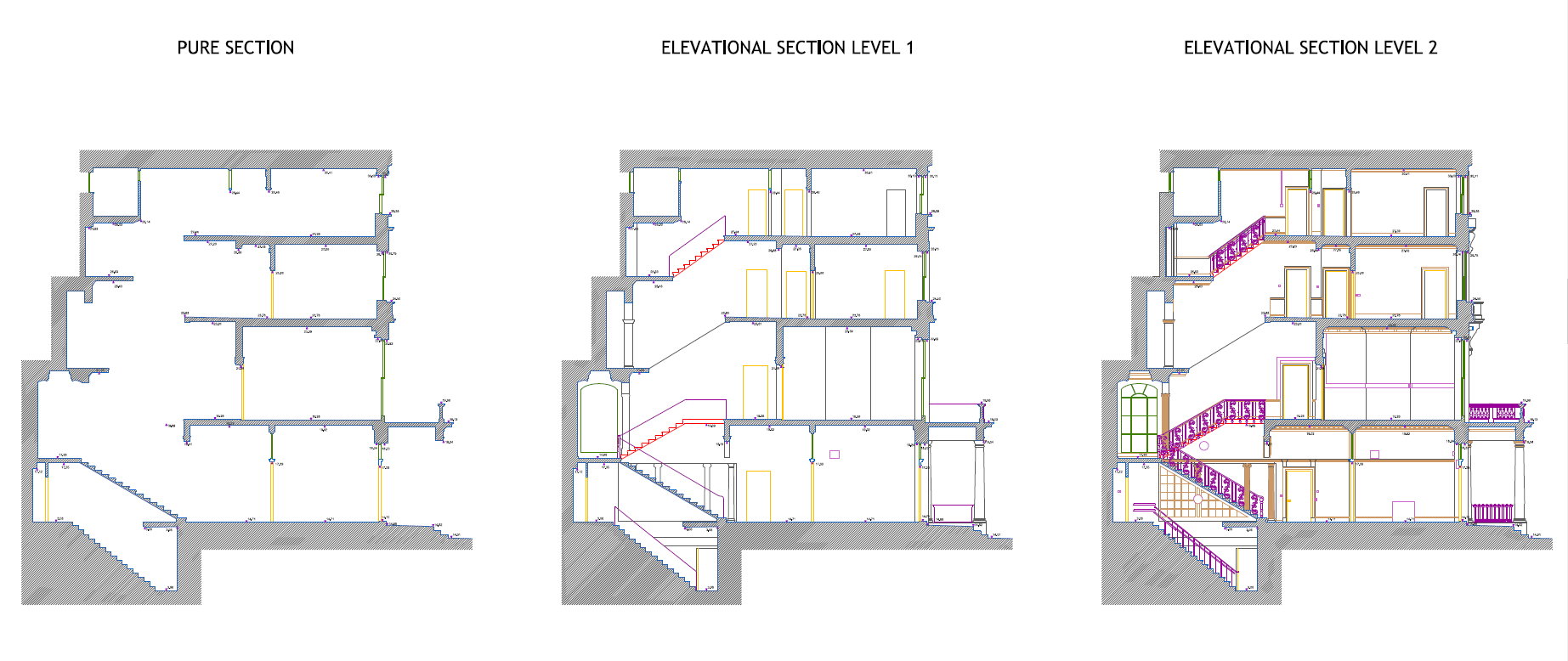 Poniżej prezentujemy trzy poziomy szczegółowości dokumentacji 2D. Podobnie jak dla BIM kategoryzacja została wykonana arbitralnie, nie należy się jej trzymać ściśle. Możemy generować rysunki dla poziomu 1, ale z podwyższonym detalem dla konkretnego obszaru czy elementu. Ważne, aby informacja o tym co jest istotne była do na przekazana.
